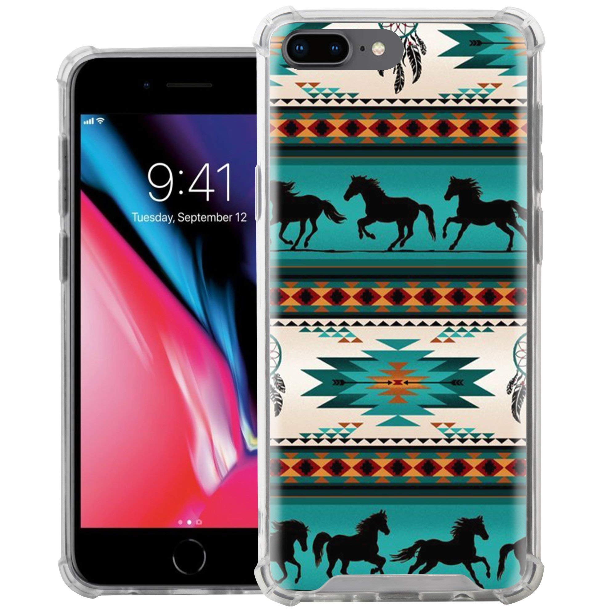 CasesOnDeck Crystal Case Compatible with [Apple iPhone 7 Plus/iPhone 8 Plus] Thin Slim Anti-Slip Grip Case with Bumper Edges Hard Back (Horse Tribal)