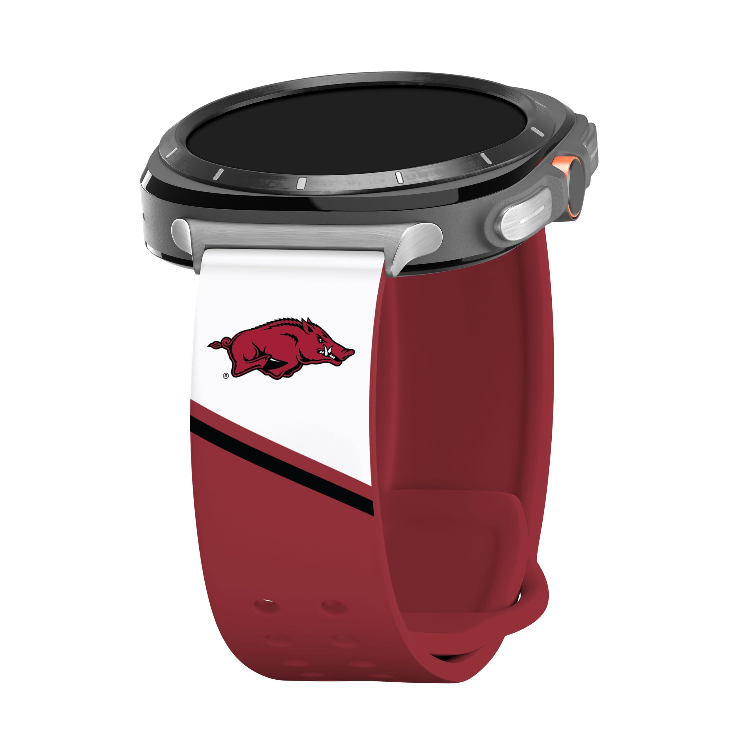 OFFICIALLY LICENSED product by The University of Arkansas. Accessorize your favorite technology with your chosen college or university to display your school pride. COMPATIBLE with Samsung Galaxy Watch Ultra 47mm. FITS every wrist comfortably with our patented dual pin and tuck design that is easily