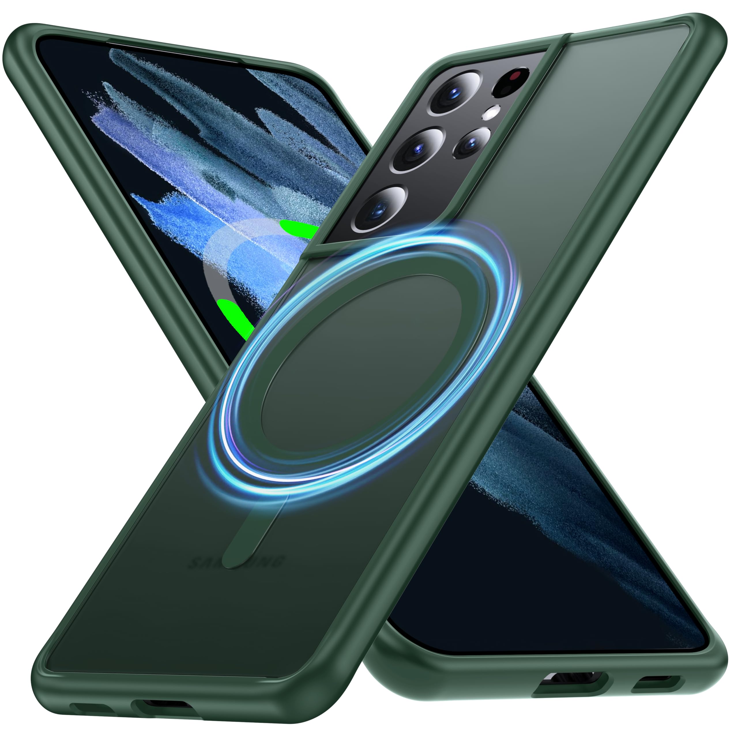 ăCompatible with MagSafe AccessoriesăAccurate built-in strong N52 magnets offers a strong attach experience and faster wireless charging. You can charge your Samsung Galaxy S21 Ultra Case on MagSafe or Qi charger for incredible convenience without taking off case.Warm Reminder: All the MagSafe p