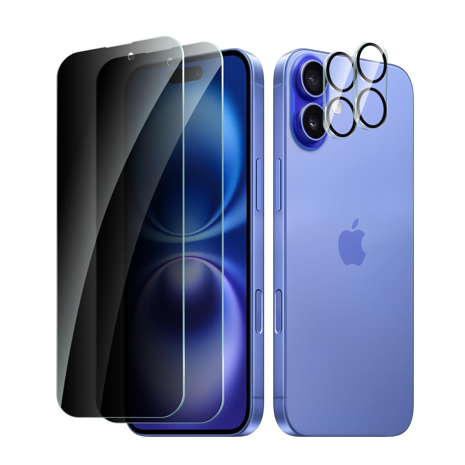 CYYAGE 2+2 Pack for iPhone 16 Privacy Screen Protector with Camera Lens Protector, Anti Spy Tempered Glass Protection Film 9H Hardness, Scratch