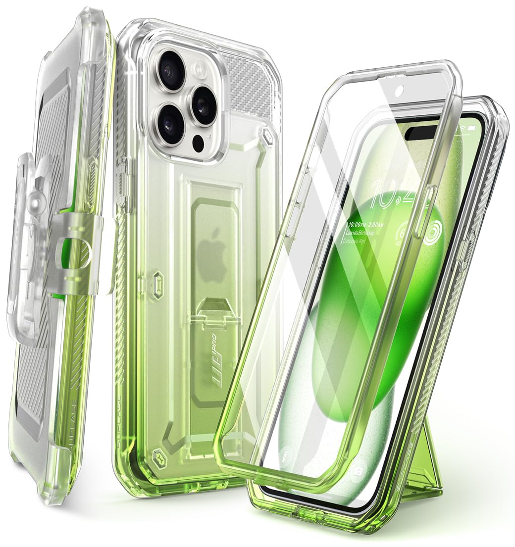 SUPCASE for iPhone 15 Pro Max Case with Screen Protector (Unicorn Beetle Pro), [Built-in Stand & Belt-Clip] [Military-Grade Protection] Full Body