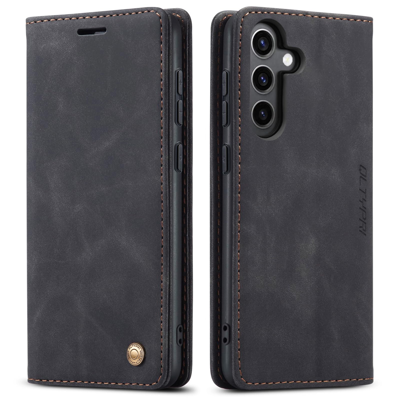 QLTYPRI Case for Samsung Galaxy S24 FE, Vintage PU Leather Wallet Case Card Slot Kickstand Magnetic Closure Shockproof Flip Folio Case Cover for