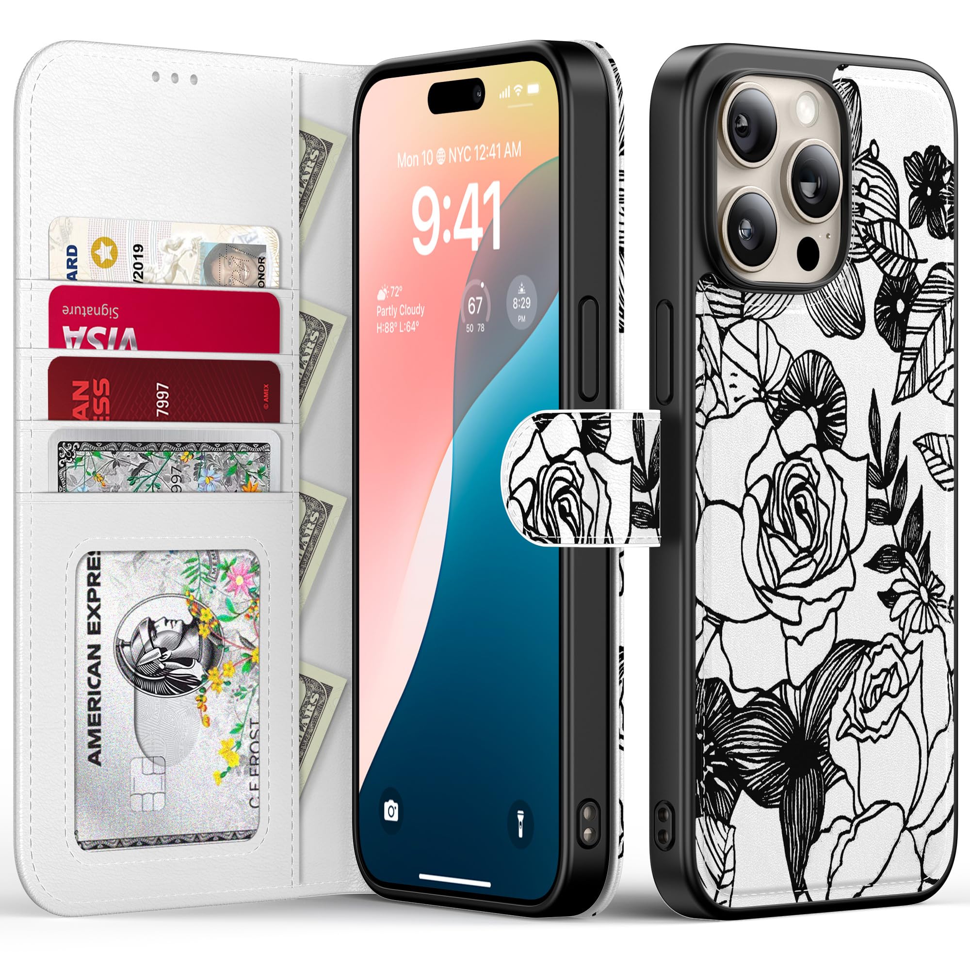 FUNMIKO for iPhone 15 Pro Max Case Wallet,Detachable Flip Folio Leather Cover,RFID Blocking 4 Card Holder,Magnetic Kickstand,Protective Phone Shell