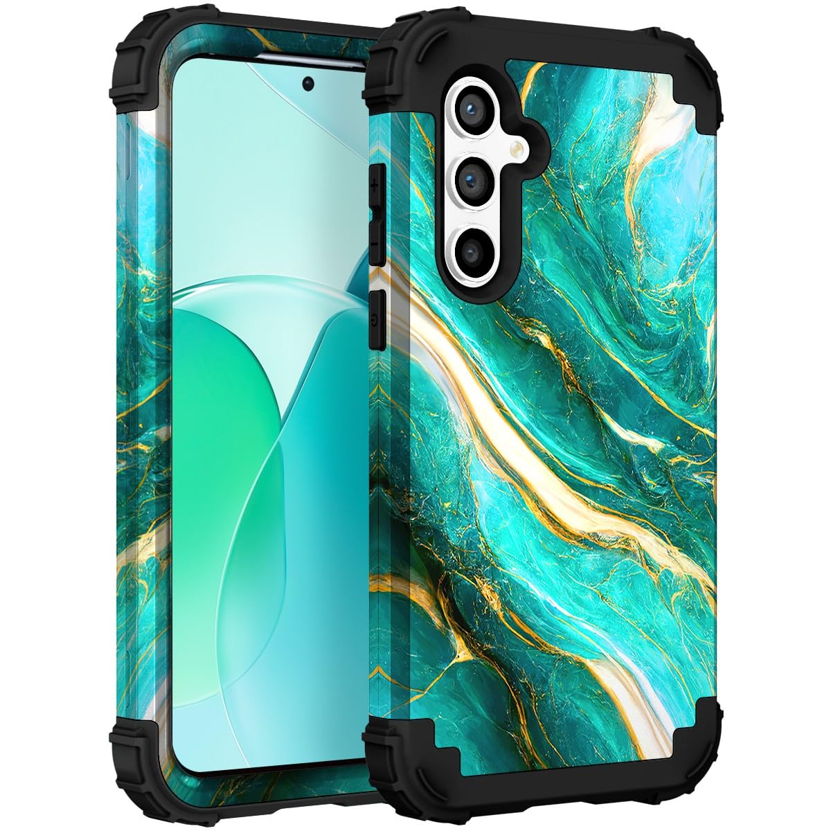 Specially designed for Samsung Galaxy S24 FE with 6.7-inch display 2024 release [Solid dual-layer Structure] hard plastic outer case+shock absorbent silicone rubber inner case resist accidental drops and falls [Cute Pattern & Unqiue Design] The unique and beautiful emerald green marble design makes
