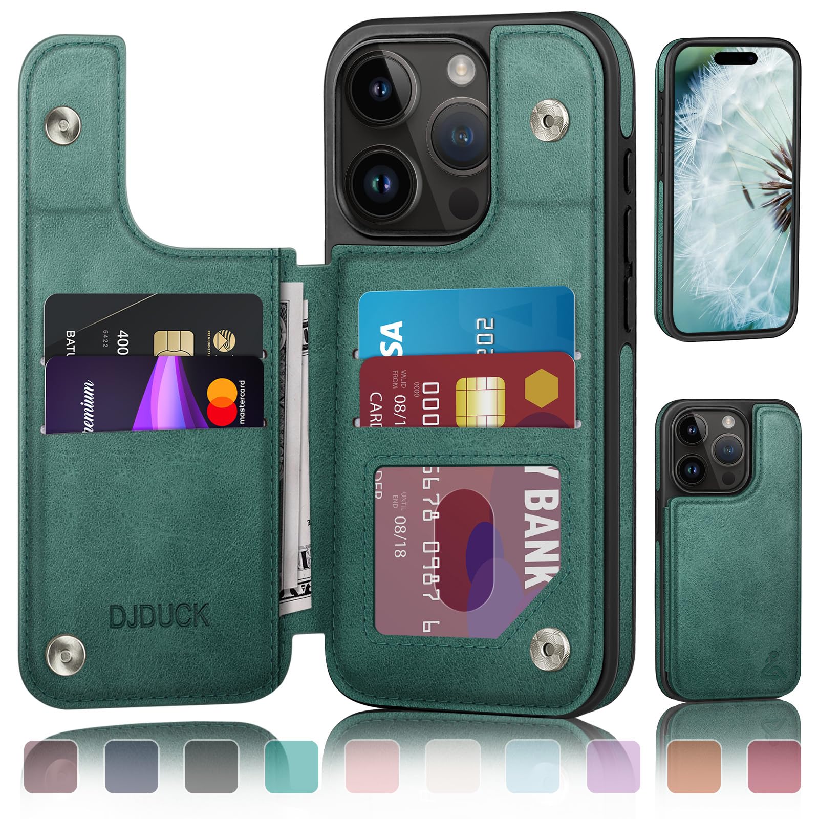 [COMPATIBILITY]---Only compatible with iPhone 15 Pro Max 6.7",NOT FIT iPhone 15/15 Plus/15 Pro.Other Choices with phone case,wlecome to click on the one next to the title [Visit the DJDUCK Store] [Credit Card Anti-Theft Swipe Function]---This RFID Blocking leather wallet case is designed to protect