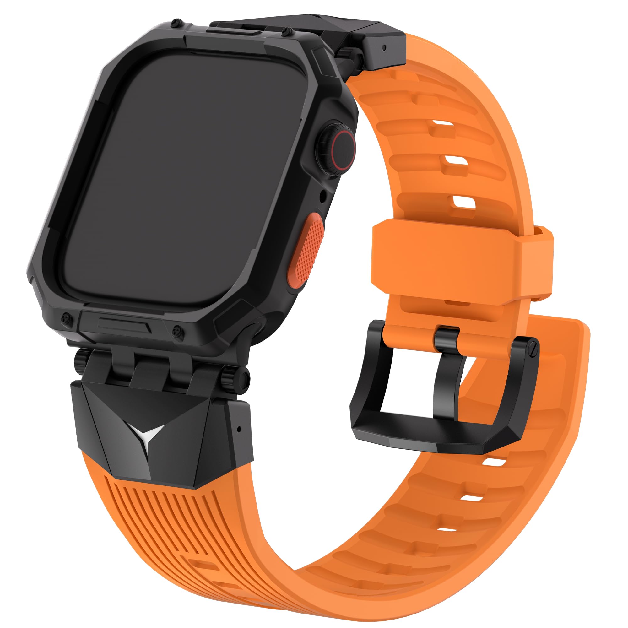 Fullmosa Bands Compatible with Apple Watch 44mm 45mm Series 9/8/7/6/5/4/SE3/SE2/SE, Rugged TPU iWatch Band with Bumper Case for Men, Orange+Black