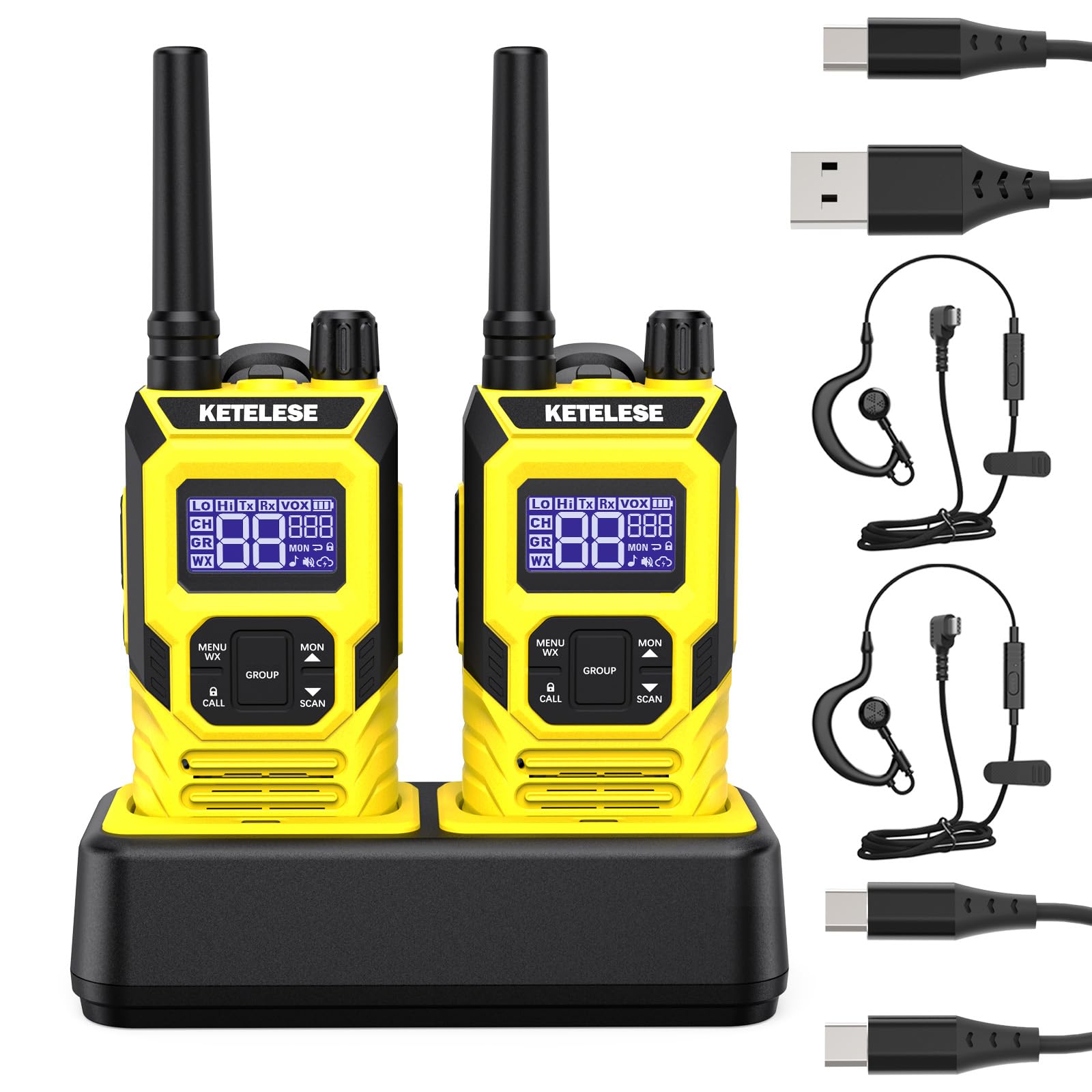 KETELESE T4 FRS Walkie Talkies Earpiece with Mic, IP67 Waterproof Two Way Radio, Walkie Talkie Long Range, 22 Channel, NOAA Weather Alert, PTT, VOX,