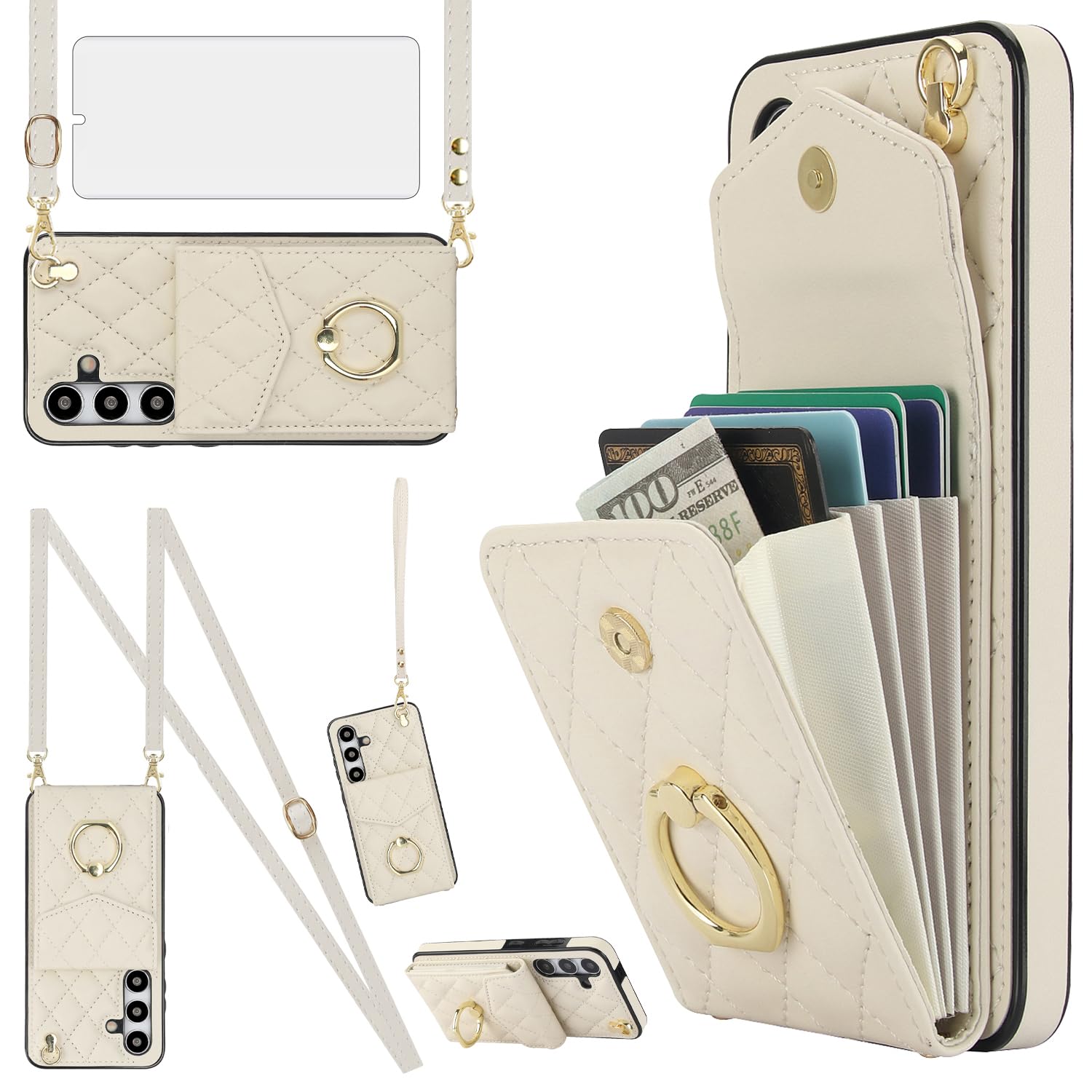 【Compatible Models】: Compatible with Samsung Galaxy S24 Plus, NOT compatible with other devices. 【Package includes】: We will send the phone case with 1 piece tempered glass screen protector + 1 detachable wrist strap + 1 detachable crossbody strap. 【Detachable Crossbody & Wrist Strap】: