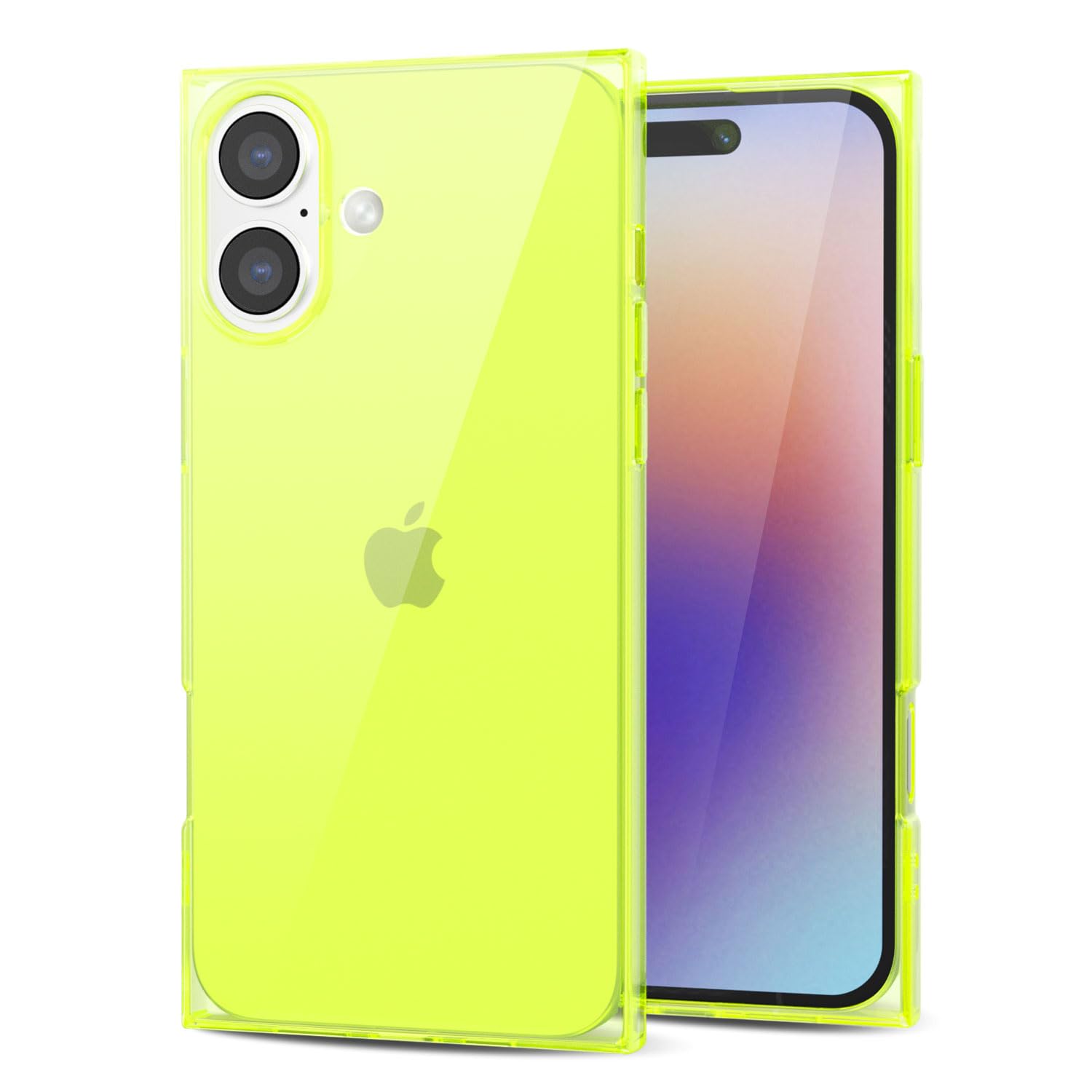 Svanove for iPhone 16 Plus Clear Case Rectangle Edge, Transparent Aesthetic Trendy Girly Neon Bright Silicone Rubber Phone Case for Women, Thin Slim