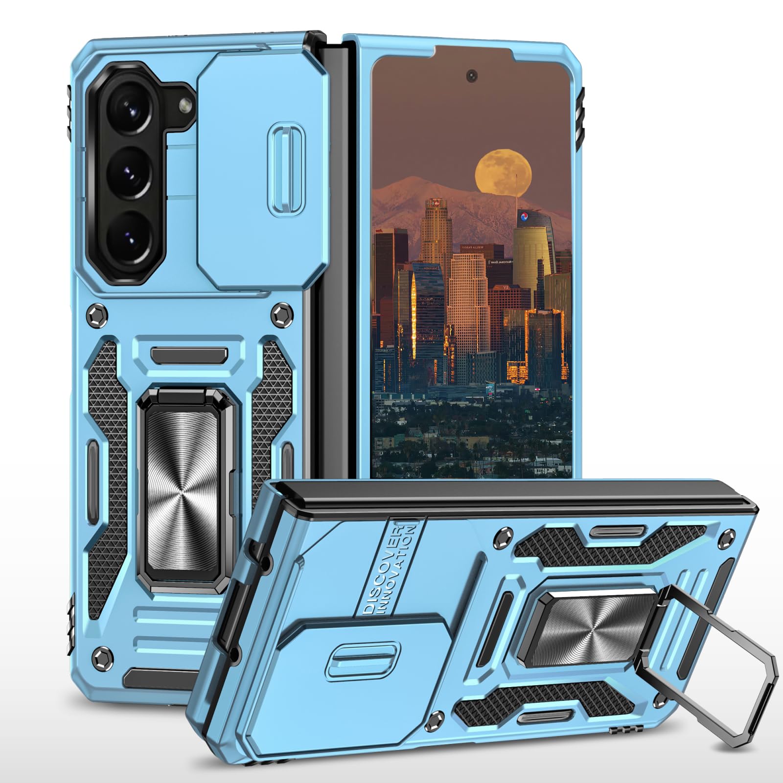 HOULEE for Samsung Galaxy Z Fold 5 Case, Heavy Duty Military Grade Drop Resistant, Metal Phone Case with Sliding Camera Cover, Kickstand, Magnetic Car