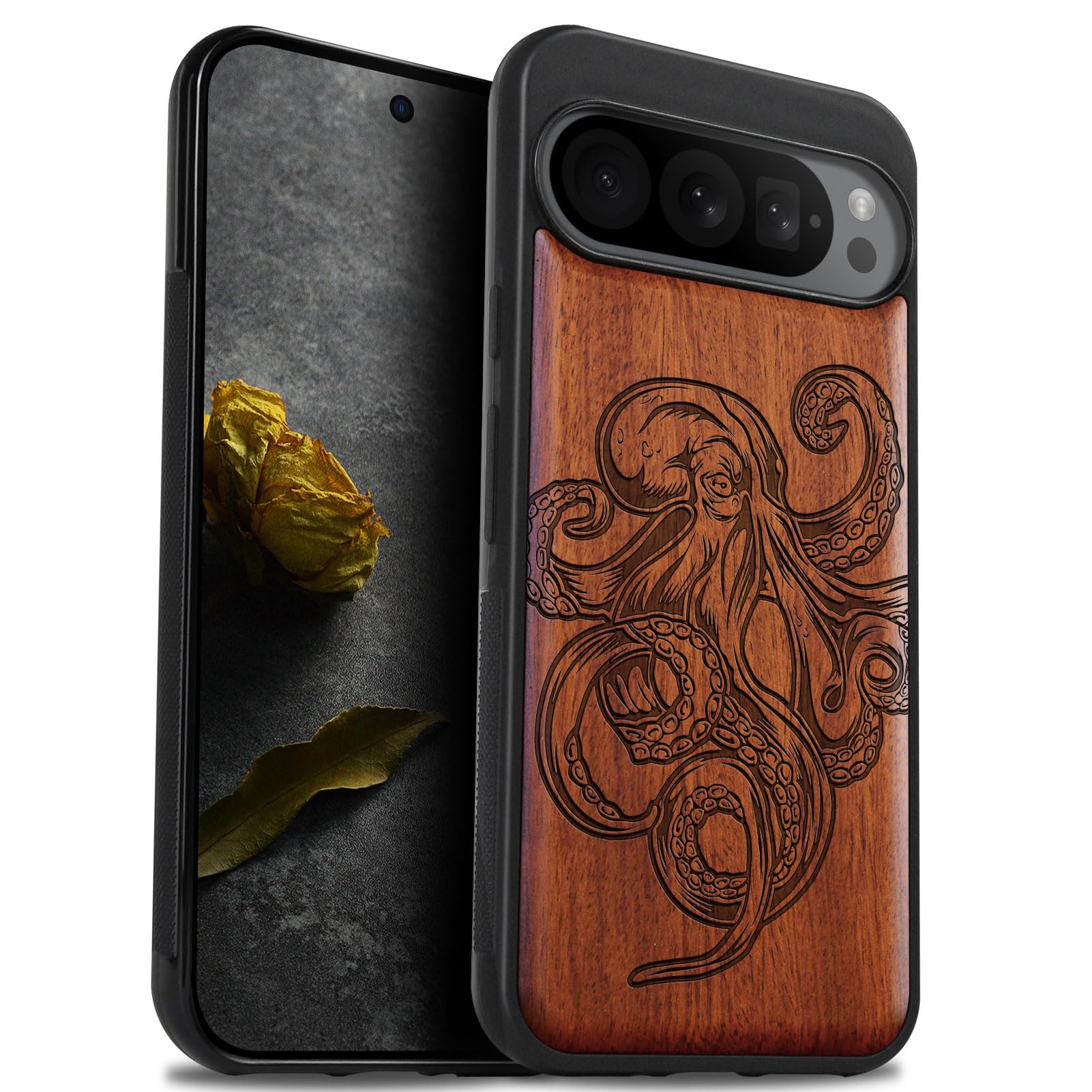 Carveit Wood Case for Pixel 9 Pro XL Case [Natural Wood & Black Soft TPU] Shockproof Protective Unique Wooden Cover Compatible with Google Pixel 9 Pro