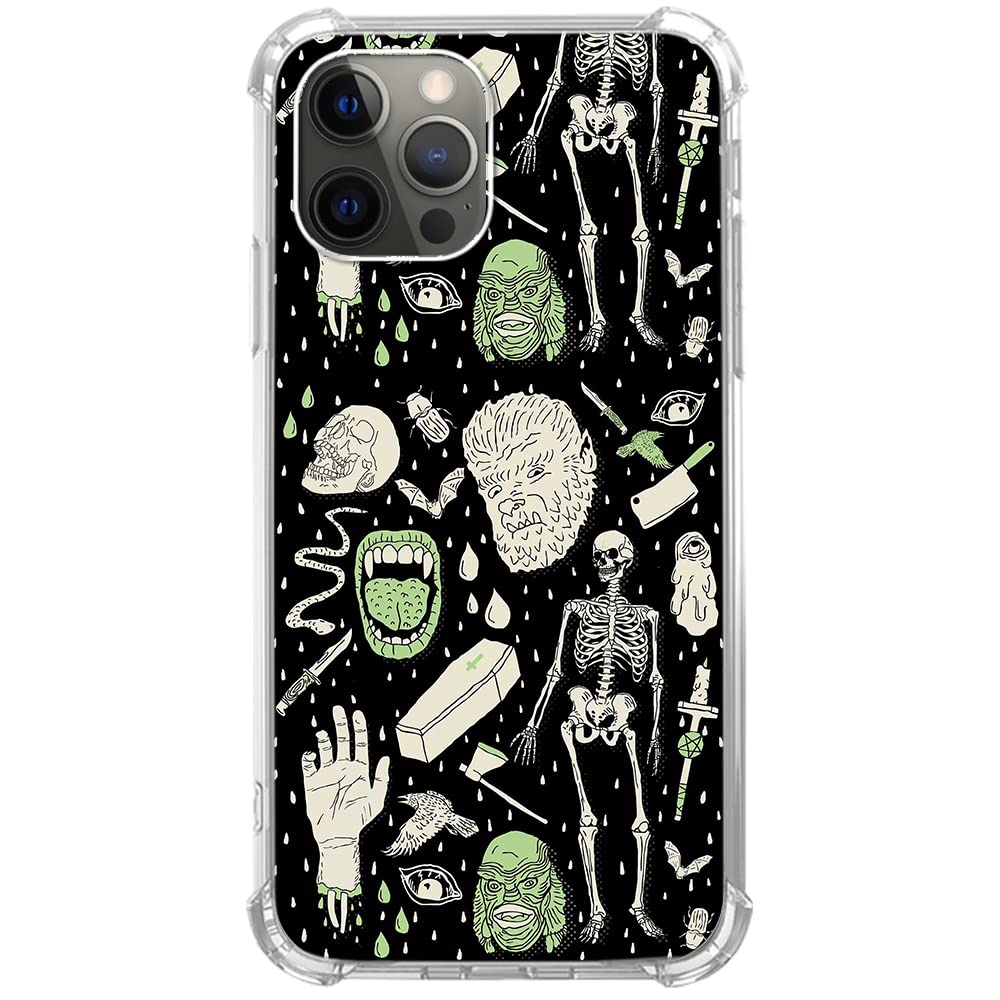Witchy Skull Art Case Compatible with iPhone 15 Pro Max, Aesthetic Dark and Green Witchcraft Skeleton Bones Case for iPhone 15 Pro Max, Trendy Cool