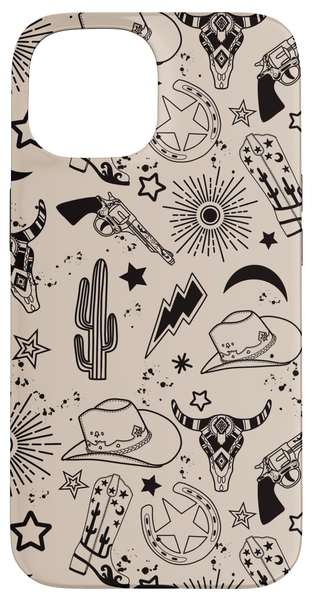 Western Cowboy design. Cowboy Hat & Boot Western Pattern Country Bull Skull Cactus on Beige who love Western Things Two-part protective case made from a premium scratch-resistant polycarbonate shell and shock absorbent TPU liner protects against drops Printed in the USA Easy installation
