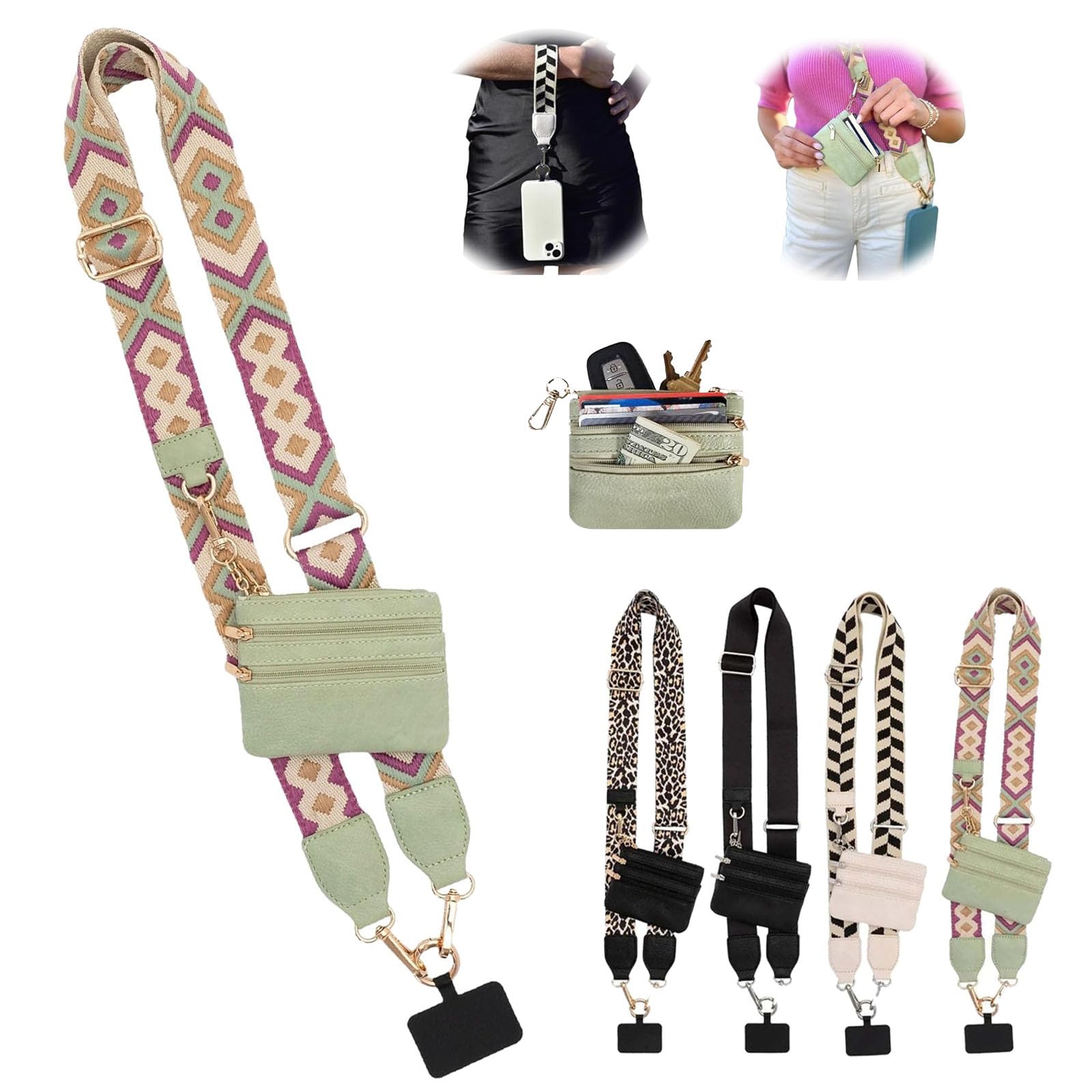 Feetcant Clip and Go Strap for Phone with Wallet Crossbody,2024 New Phone Strap with Zippered Pouch,Adjustable
