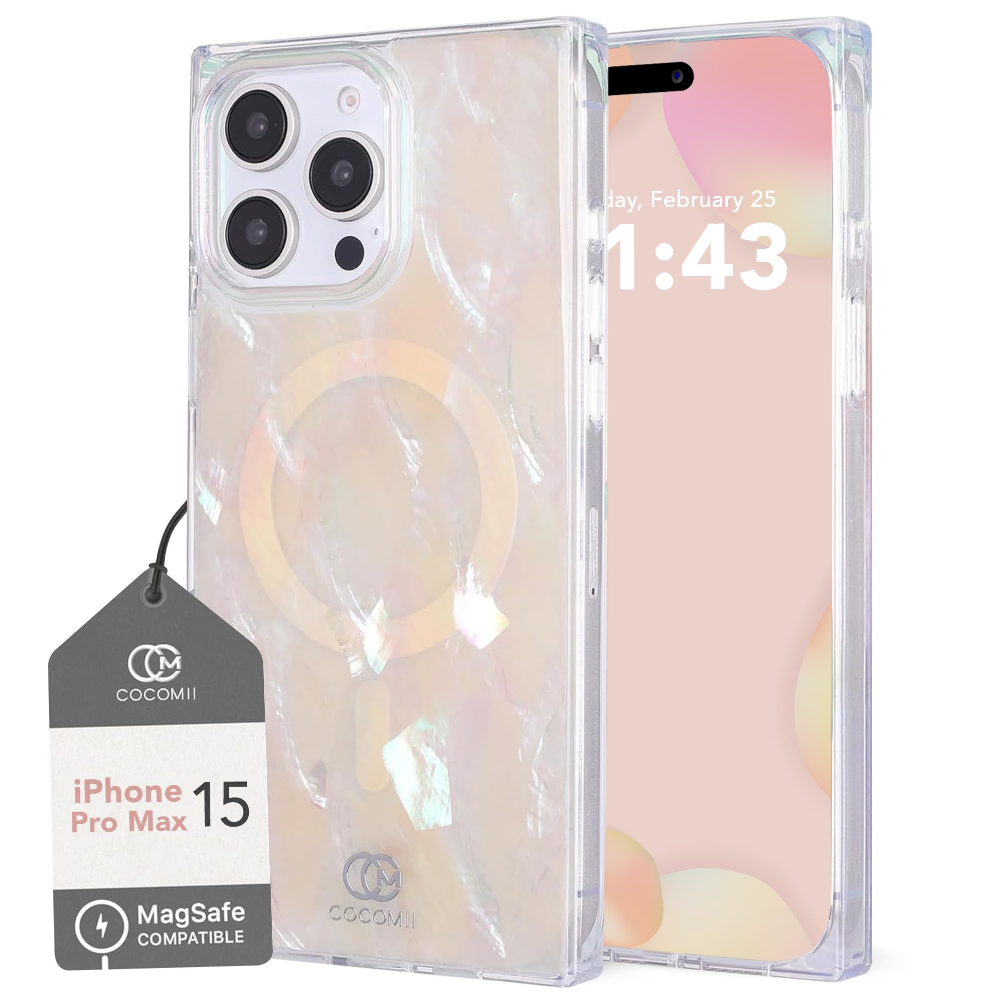 Cocomii - Rectangle Case Compatible with iPhone 15 Pro Max - Compatible with MagSafe, Real Mother of Pearl, Opalescent Seashell, Glossy, Magnetic