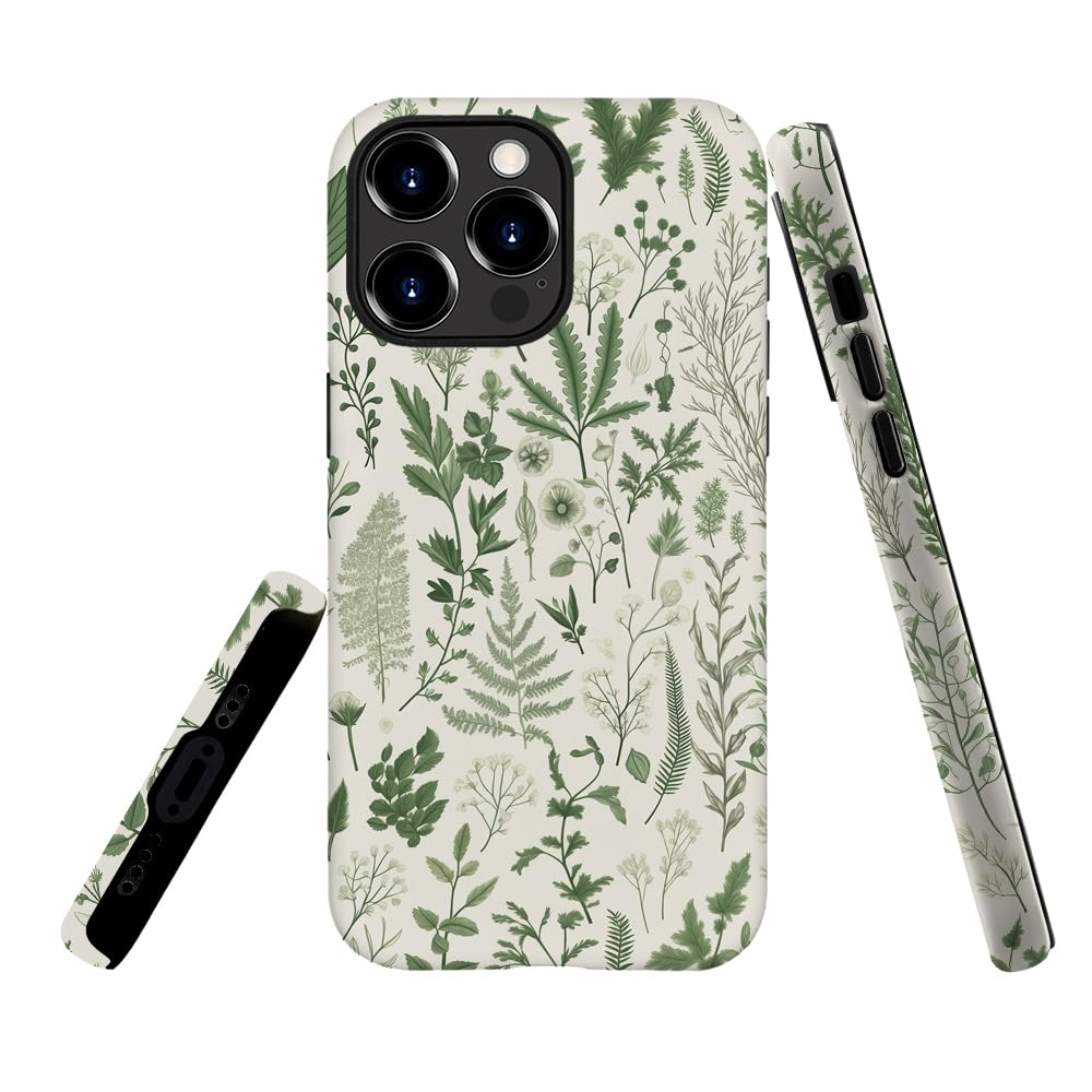 kiritfox Case Compatible with iPhone 16 Pro Max,Hybrid 2-Layer Hard Shell,Shockproof Soft for Girl Women,Vintage Sage Green Floral Pattern