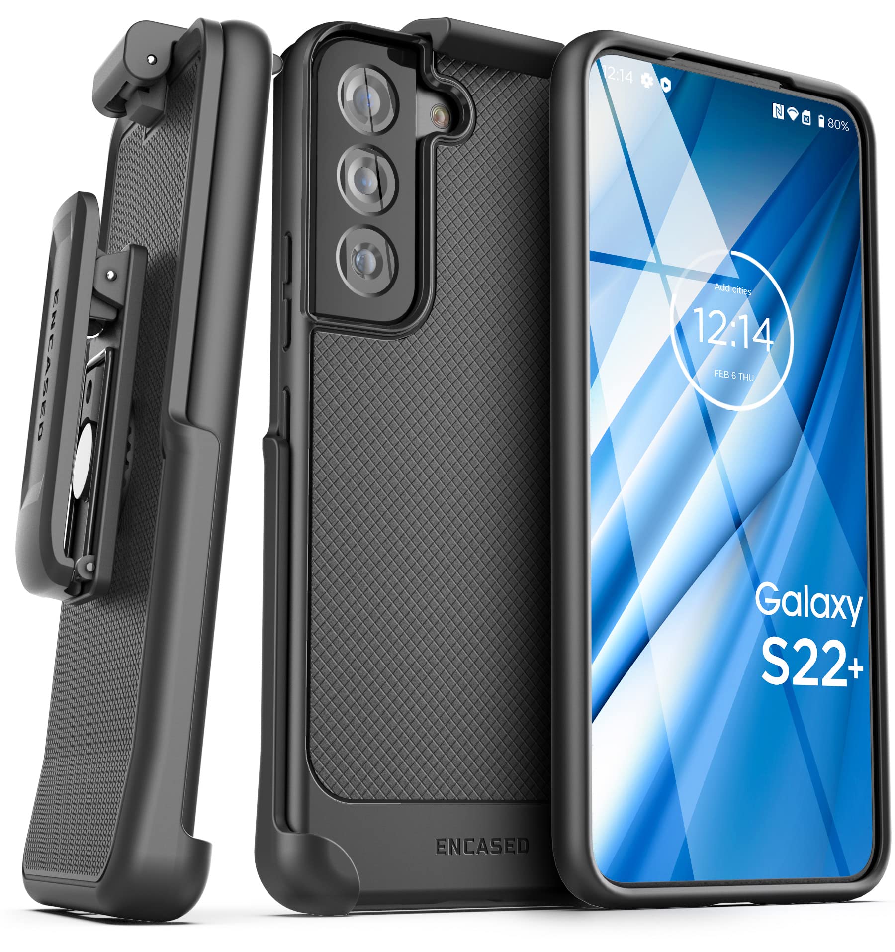 Encased Thin Armor Designed for Samsung Galaxy S22 Plus Belt Clip Case, Slim Fit Phone Case with Holster for Samsung S22+ (Matte Black)