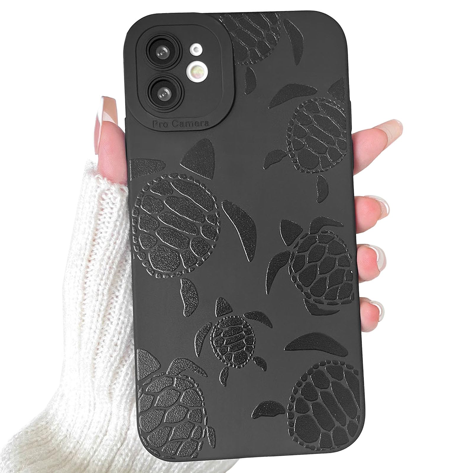 Lovmooful Compatible for iPhone 12 Case Cute Cool Tortoise Black Design for Girls Women Soft TPU Shockproof Protective Girly for iPhone 12-Black