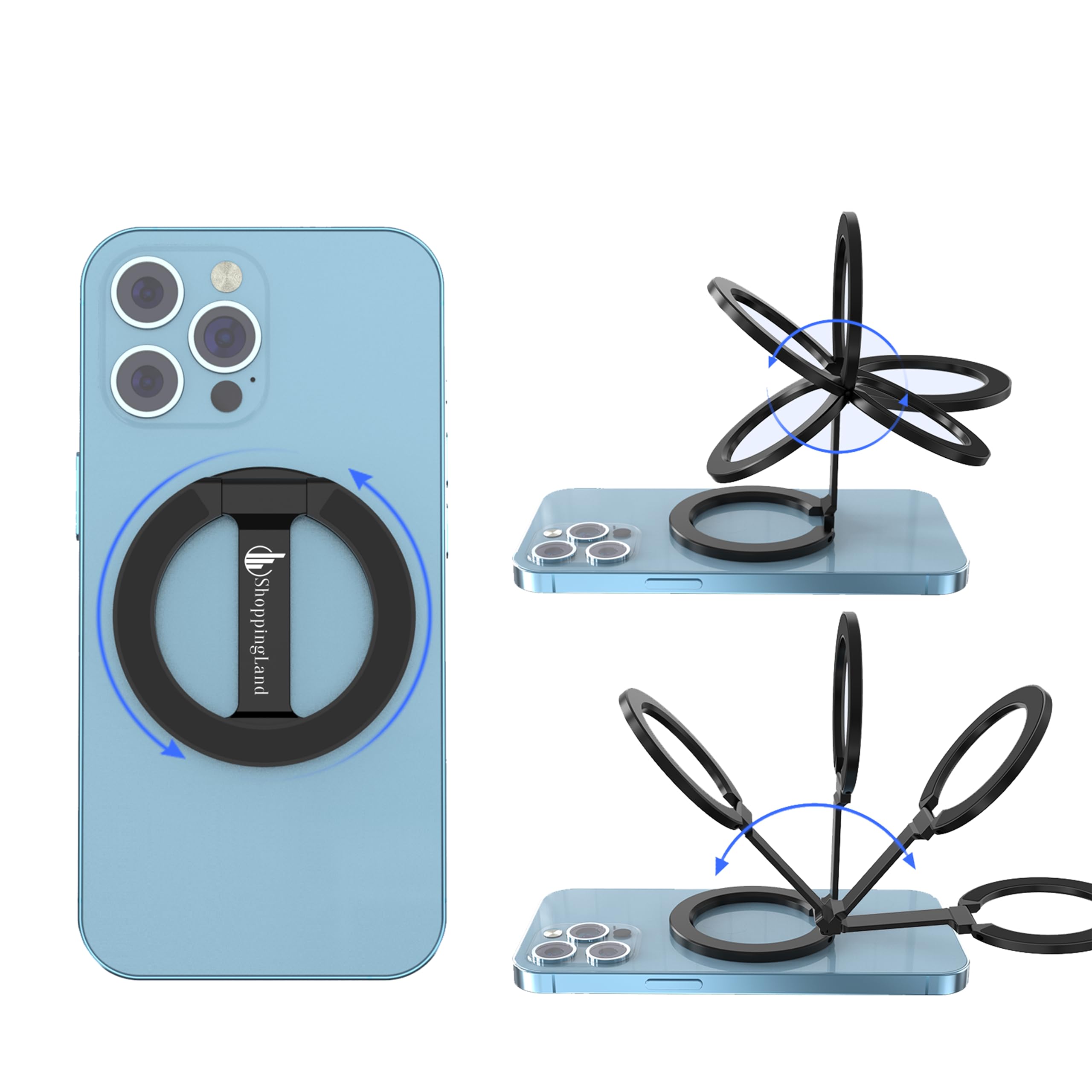Strong Magnetic Phone Grip with Kickstand - Versatile Cell Phone Holder for Gym, Car Mount- Durable Double-Sided Magnetic Ring- Includes Metal Ring,