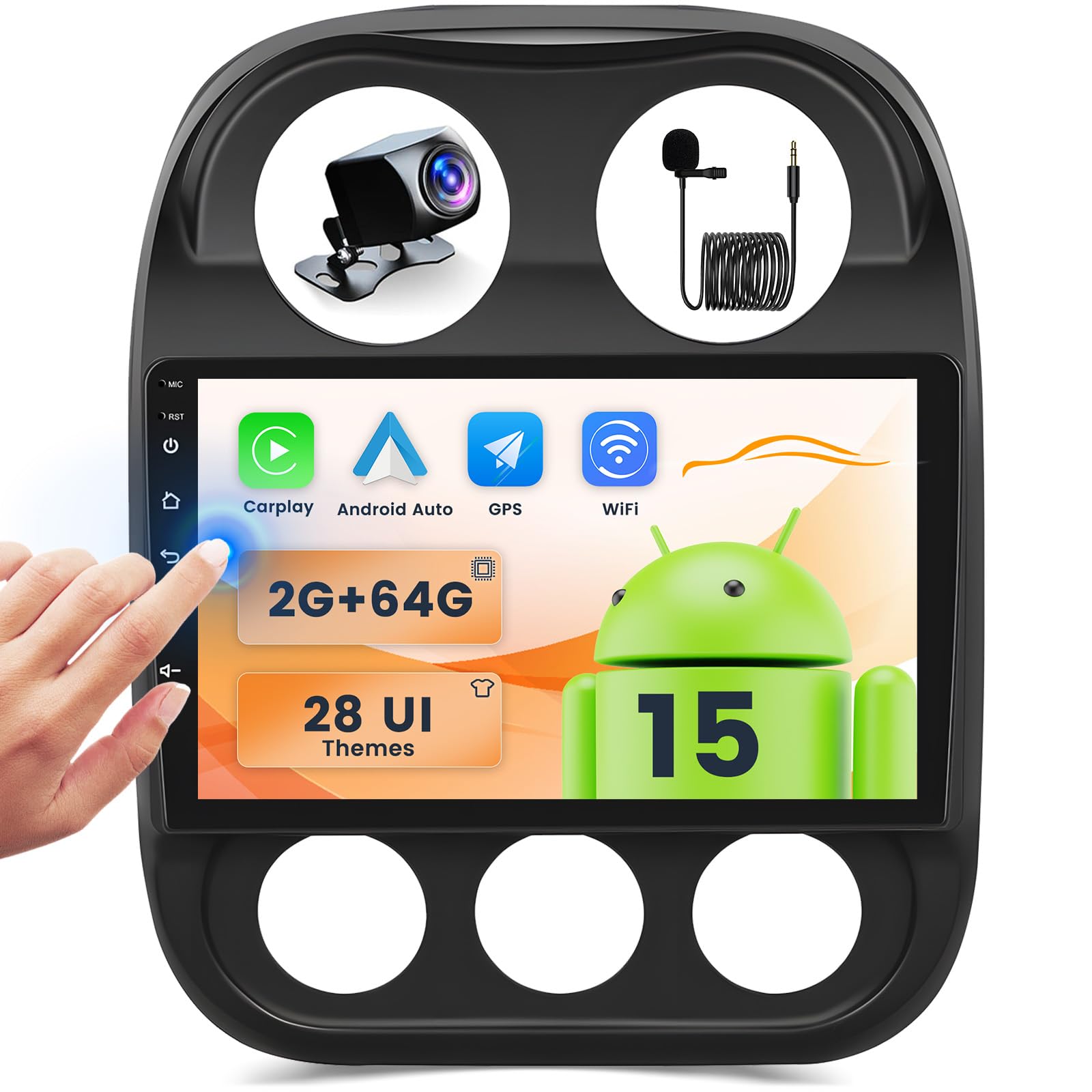 2+64G Android Car Stereo for Jeep Compass Patriot 2010-2016 Wireless Carplay Android Auto, 10.1 Inch Touch Screen Car Radio GPS WiFi Bluetooth Audio