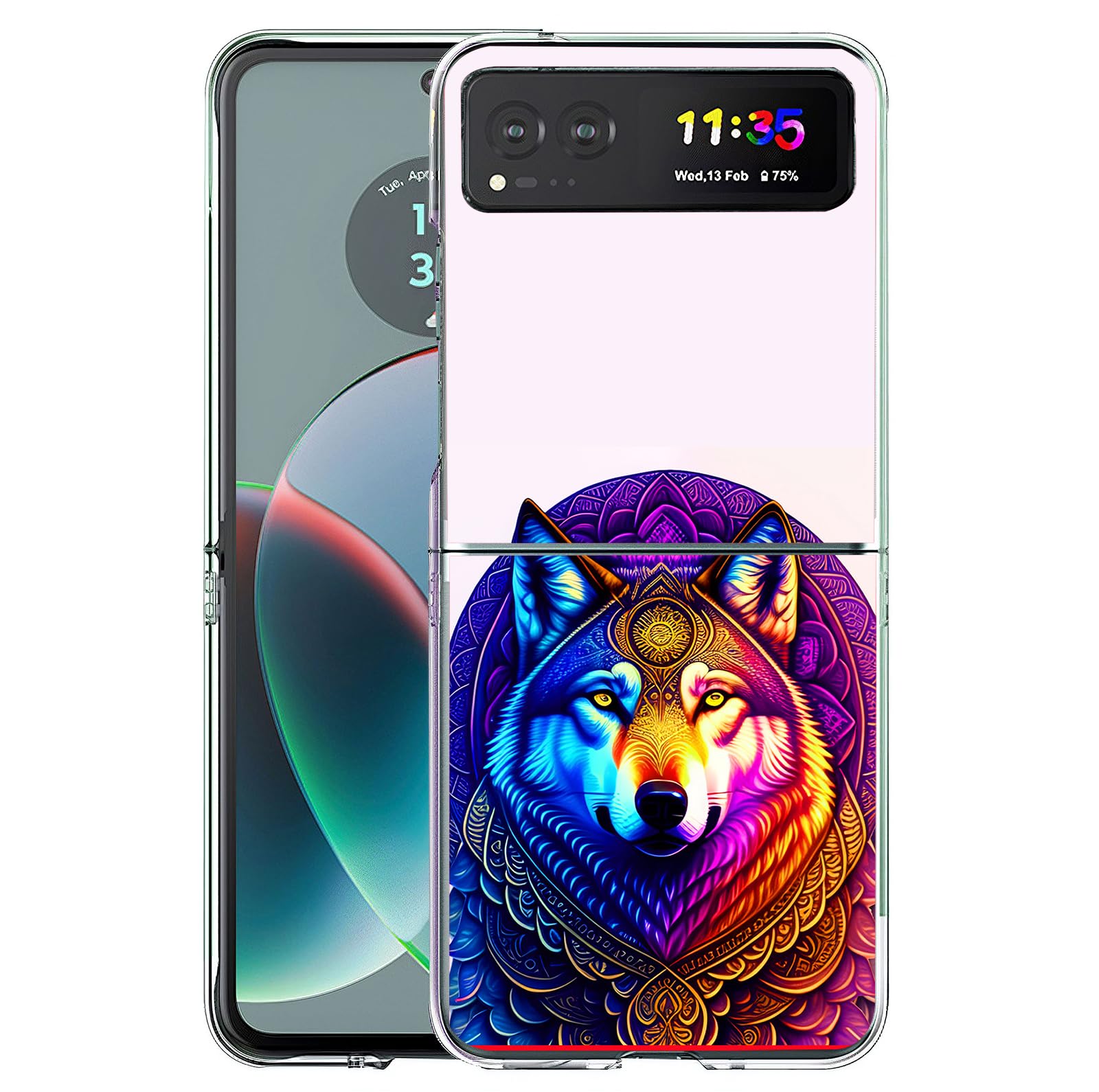 Bcov Case for Motorola Razr 2023,Floral Wolf Mandala Anti-Scratch Solid Hard case Protective Shookproof Phone Cover for Motorola Razr 2023