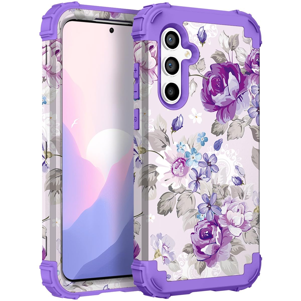Specially designed for Samsung Galaxy S23 FE with 6.4-inch display 2023 release [Solid dual-layer Structure] hard plastic outer case+shock absorbent silicone rubber inner case resist accidental drops and falls [Cute Pattern & Unqiue Design] The unique and beautiful flower design makes your phone loo