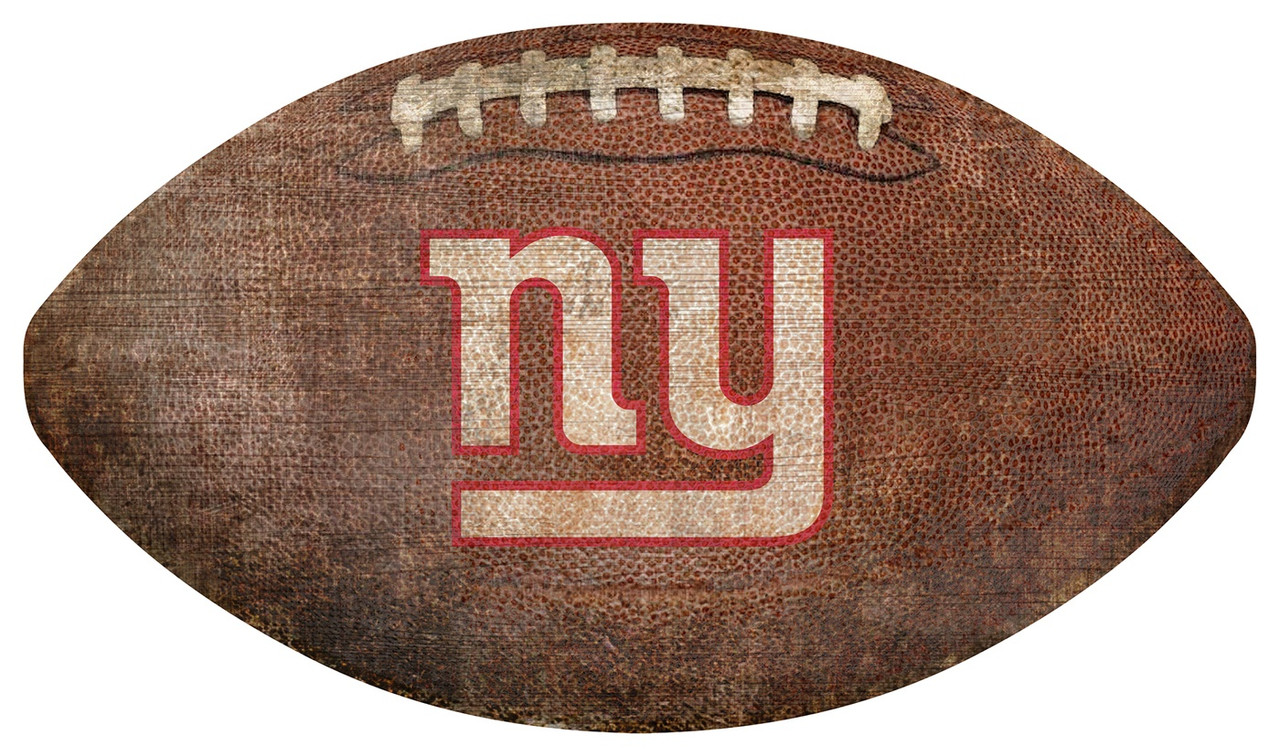 The New York Giants Football Shaped Sign by Fan Creations is custom printed to mimic the rustic look of real wood. Designed and produced in the USA, this gift item is perfect for the biggest sports fan!