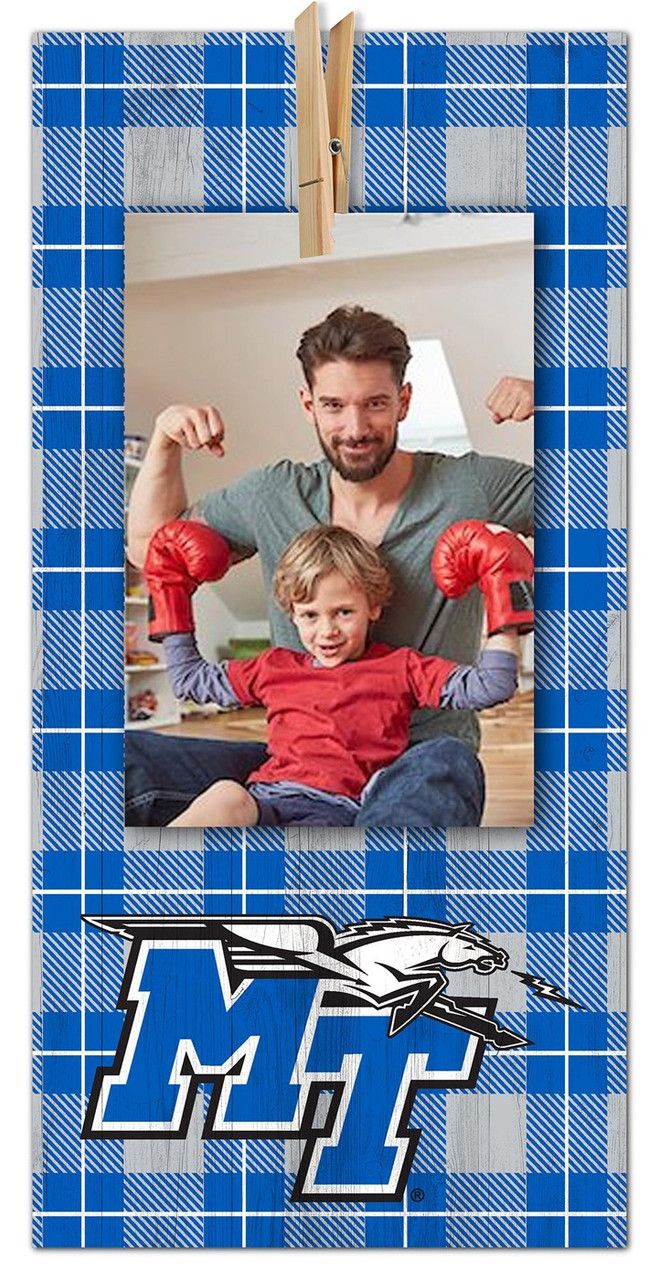 Middle Tennessee State Blue Raiders Plaid Clothespin 6" x 12" Sign