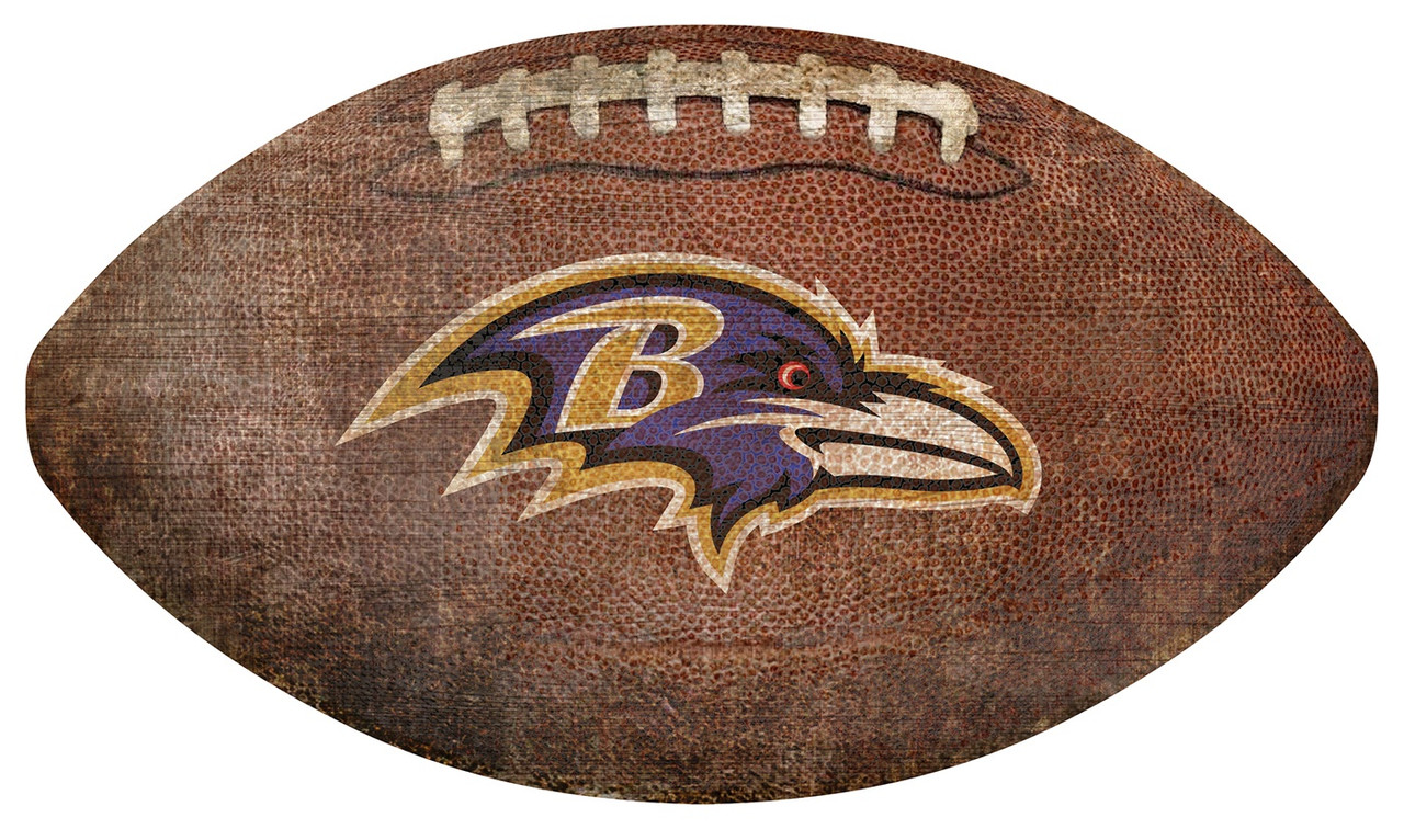 The Baltimore Ravens Football Shaped Sign by Fan Creations is custom printed to mimic the rustic look of real wood. Designed and produced in the USA, this gift item is perfect for the biggest sports fan!