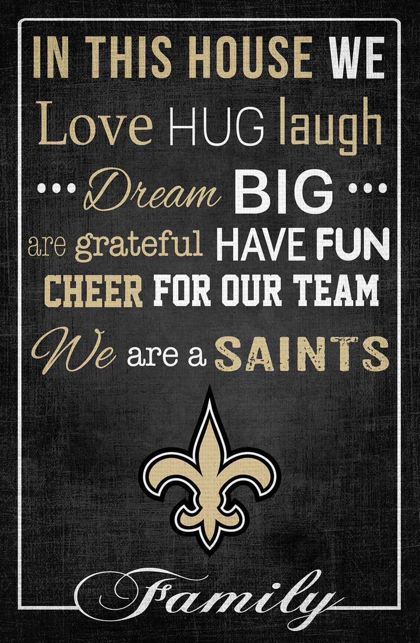 The New Orleans Saints 17" x 26" In This House Sign by Fan Creations is custom printed to mimic the rustic look of real wood. Designed and produced in the USA, this gift item is perfect for the biggest sports fan!