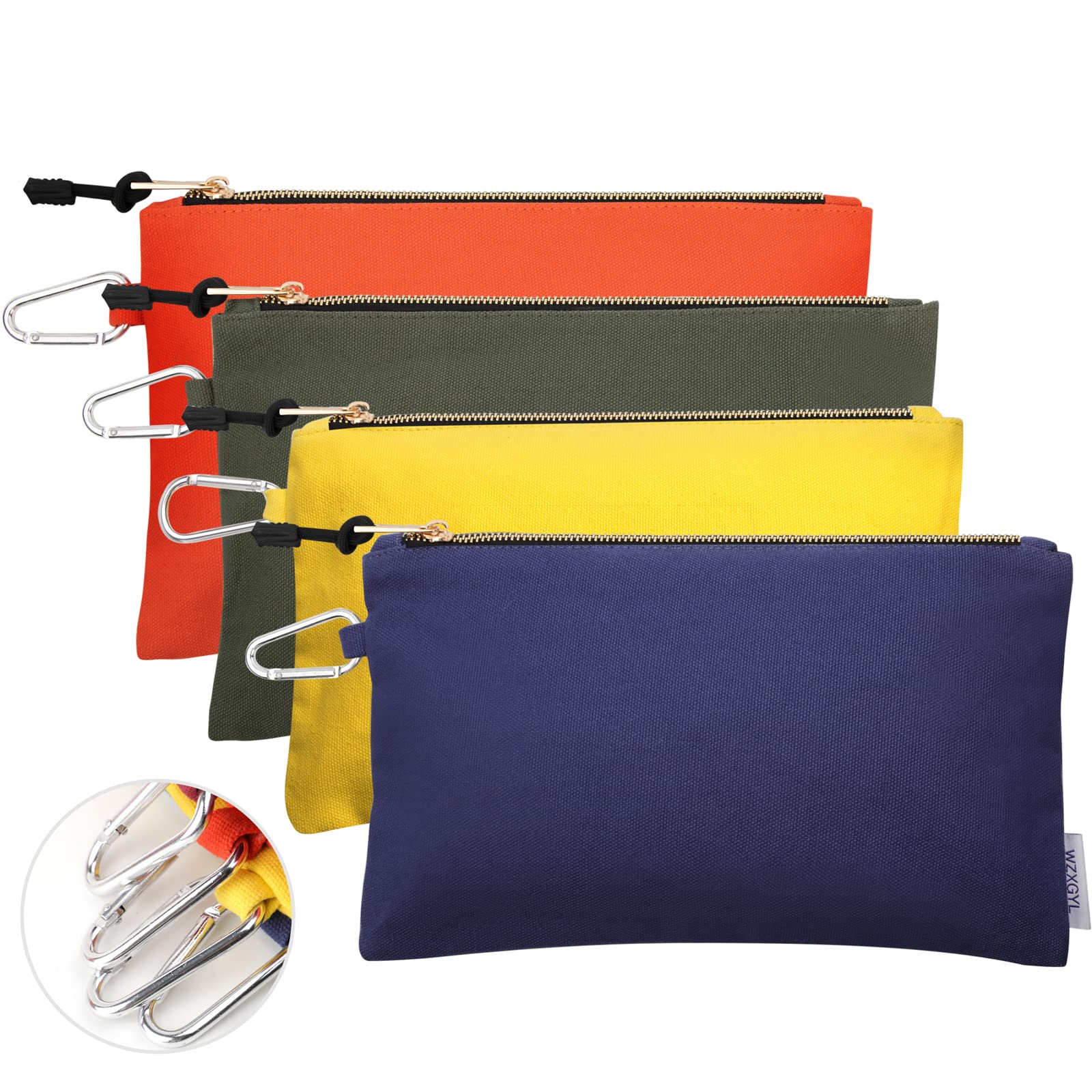 WELKINLAND Heavy-Duty Canvas Tool Pouch - 4PCS, 12" Waxed Canvas Zipper Tool Pouch