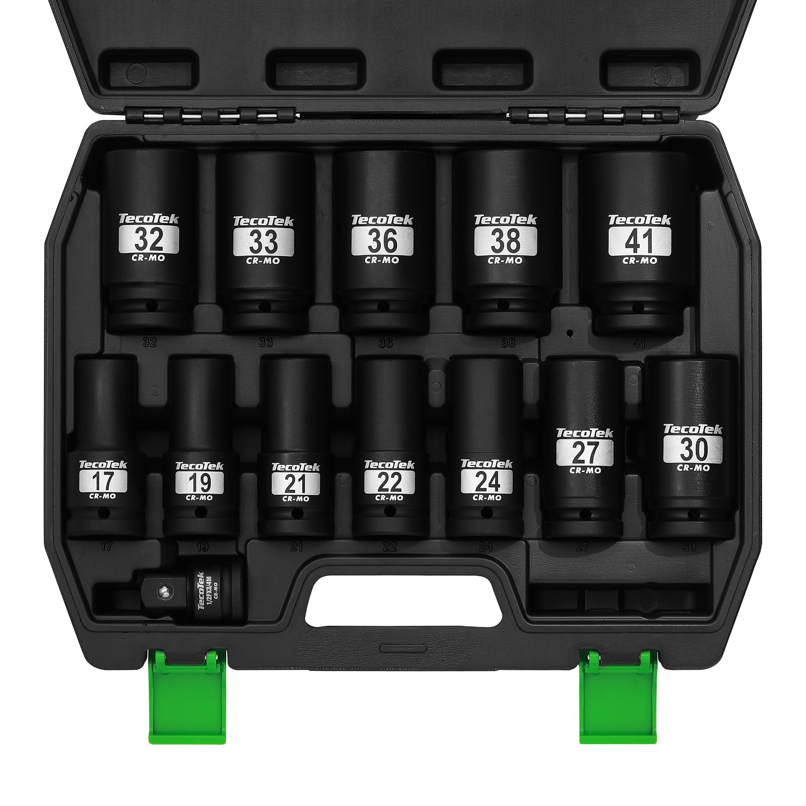 TecoTek 3/4" Drive Deep 6-Point Impact Socket Set, 13-Piece Jumbo Assortment, Cr-Mo, Metric (17mm to 41mm), 1/2" F to 3/4" M Impact Socket Adapter,