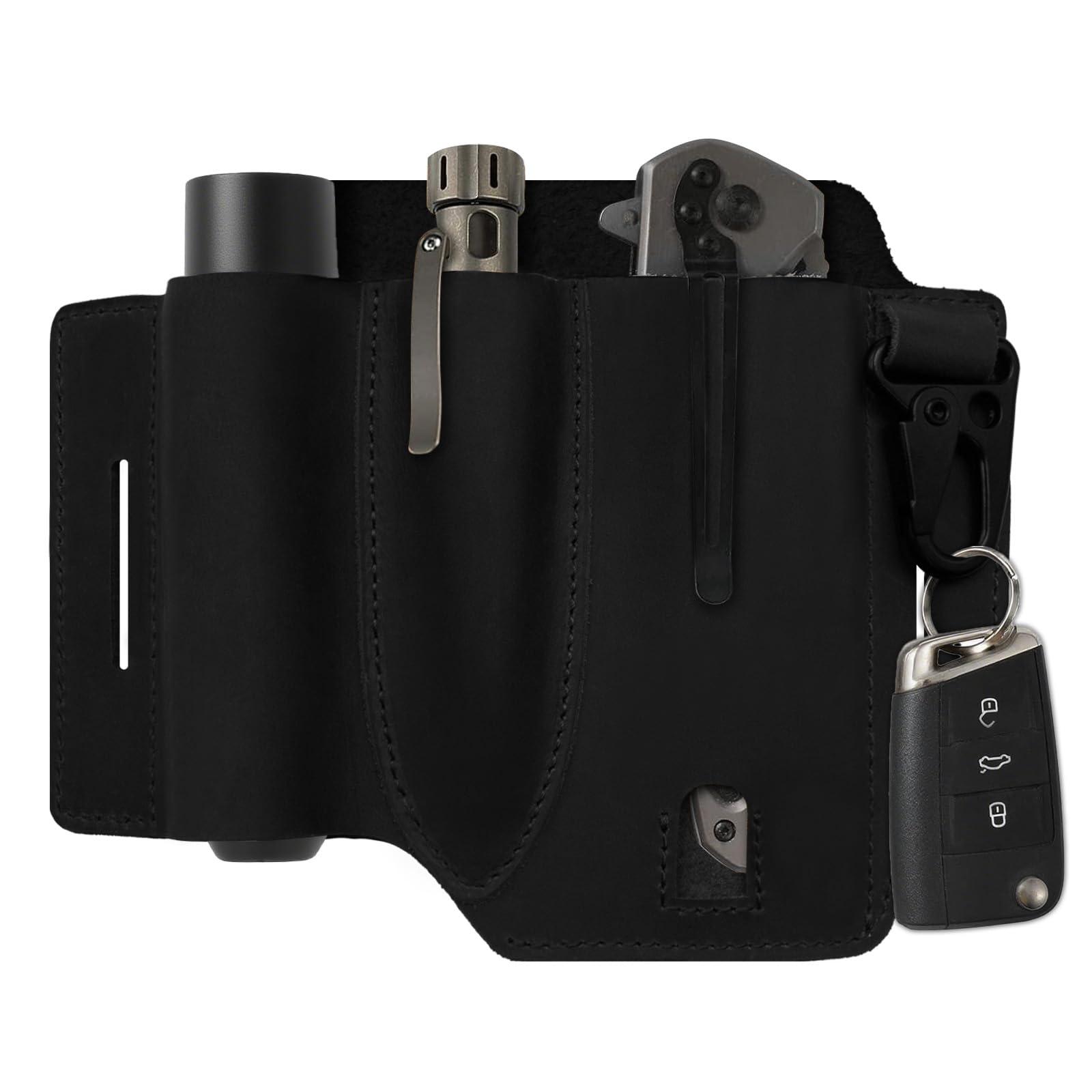 Jack&Chris Leather EDC Multitool Sheath for Belt, EDC Belt Organizer for Leatherman Tools, EDC Pocket Organizer for Men with Pen Holder, Key Fob,