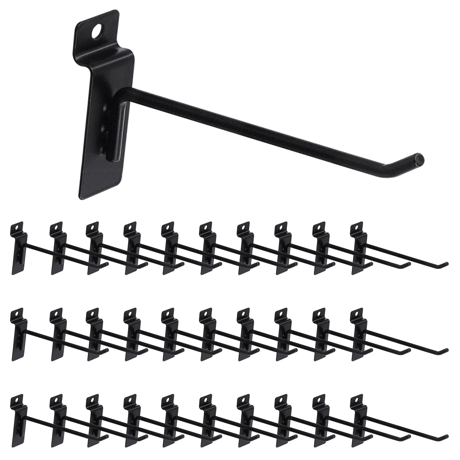 [What you Get] You will receive 30pcs 15 cm/ 6 inch black slatwall hooks. Their wire diameter measure 5.6mm/ 0.22”. The nice the combination of enough quantity will meet your space planning or replacement needs. [Thickened Material] The slat wall hanging hooks are made of quality stainless steel t