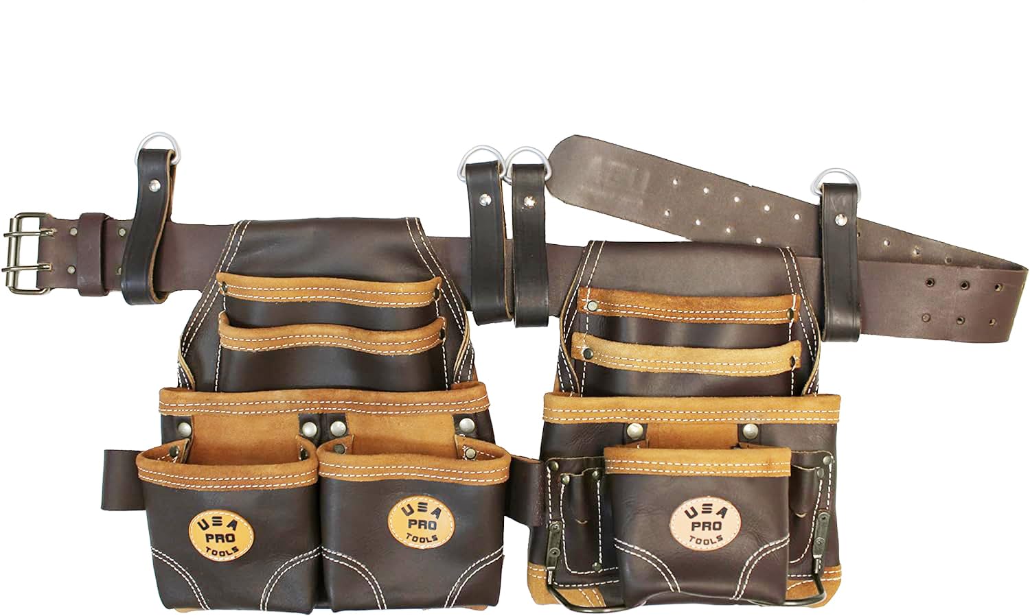 USA Pro Tools Tool Belt,Leather Tool Rig for Carpenters,Framers,Electricians,Constructors,and Handyman,Adjustable Tool Pouches,SST 1214-1215