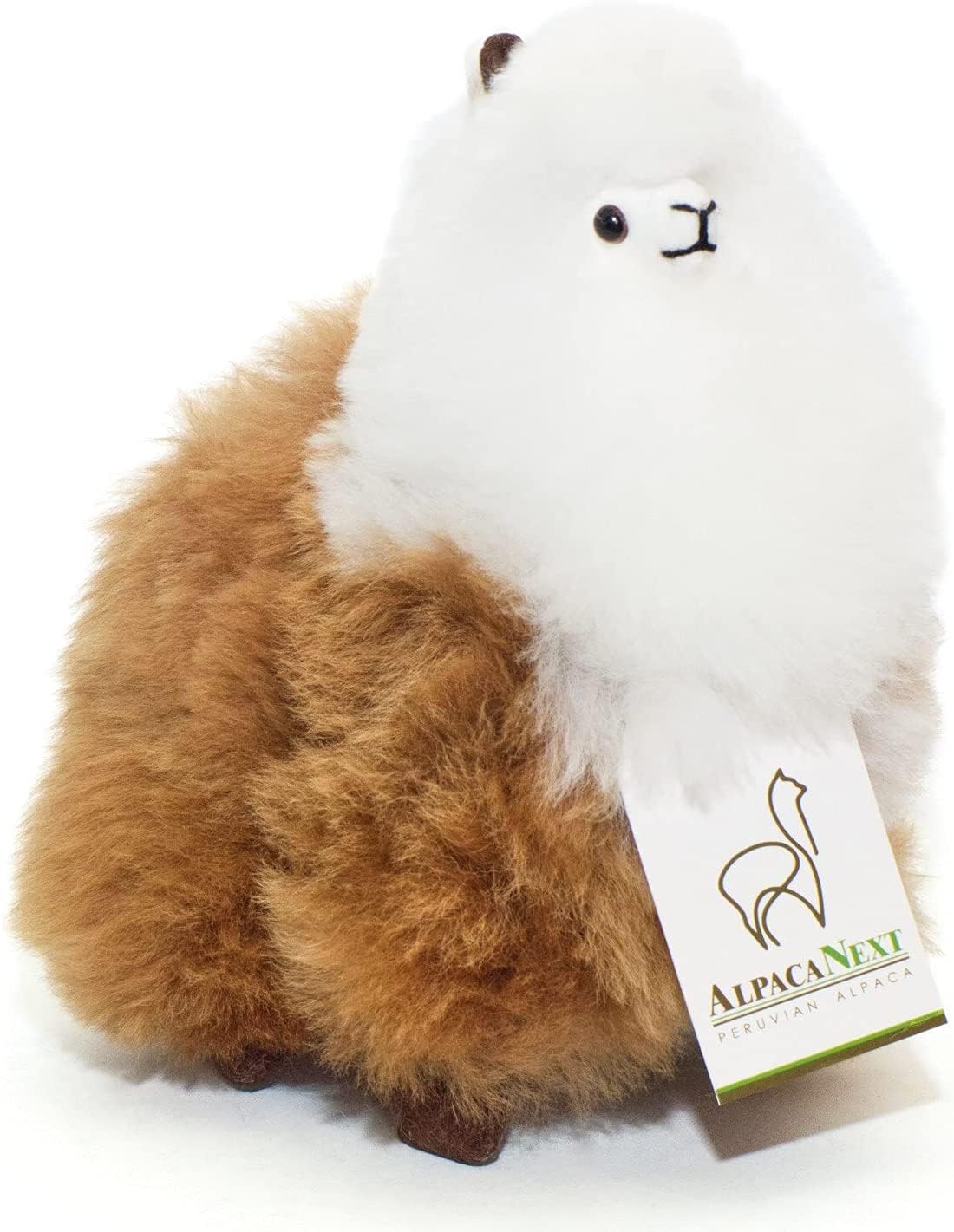 AlpacaNext Alpaca Stuffed Animal – 9 inch. Cute, Soft and Cuddly Alpaca Plush Toy Handcrafted on Real Alpaka Natural Fur (9 inches, Brown & White)
