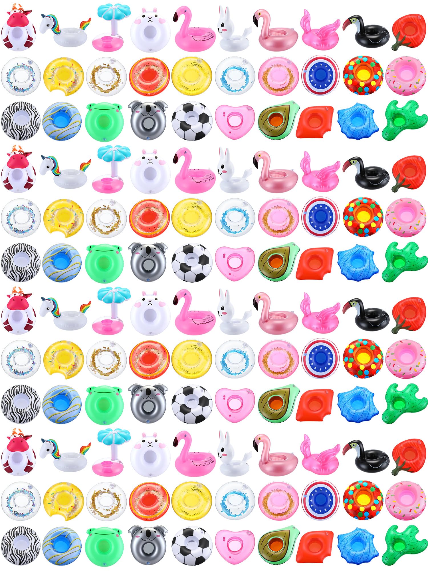 Lenwen 120 Pack Inflatable Drink Holder Pool Drink Floats Inflatable Floating Cup Holders for Adults Summer Swimming Pool Party Supplies, Bath Toys