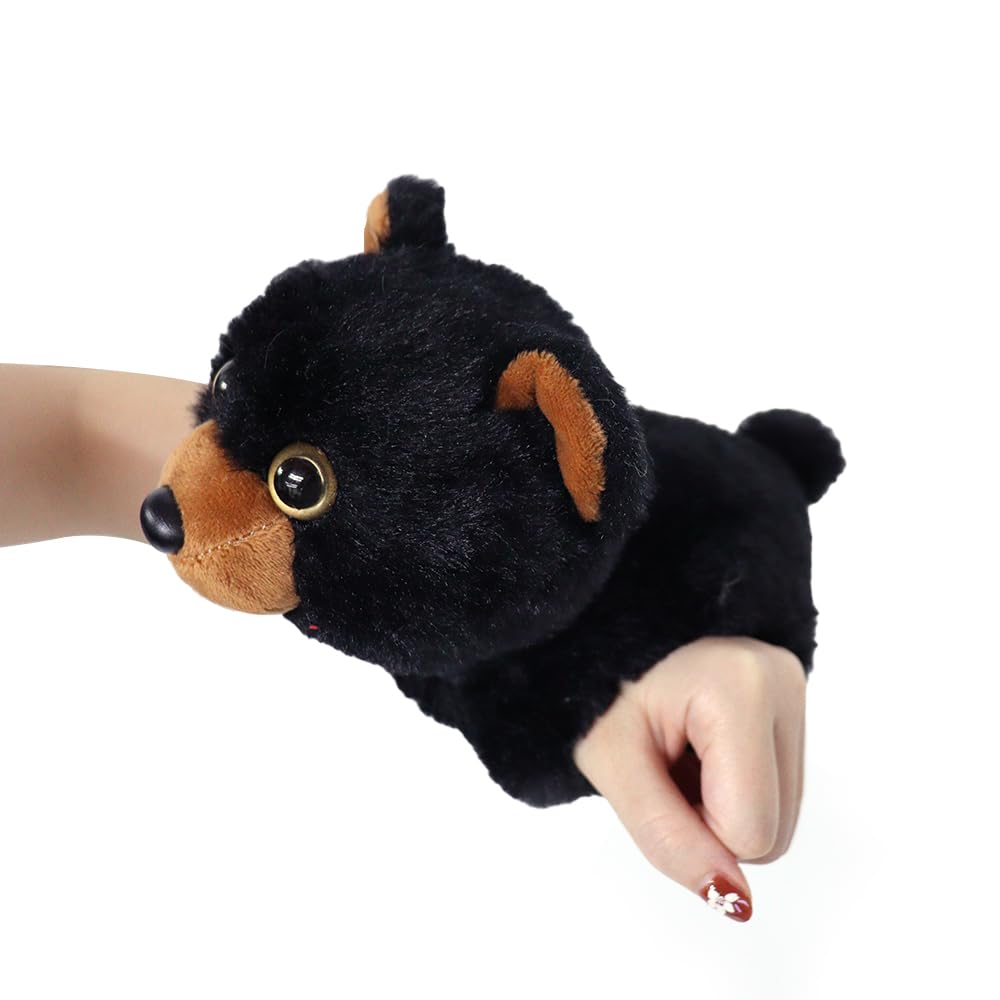 The Petting Zoo Black Bear Stuffed Animal Plushie Slap Bracelet, Gifts for Kids, Slapstix Wildlife Animals, Bear Plush Toy, 10 inches