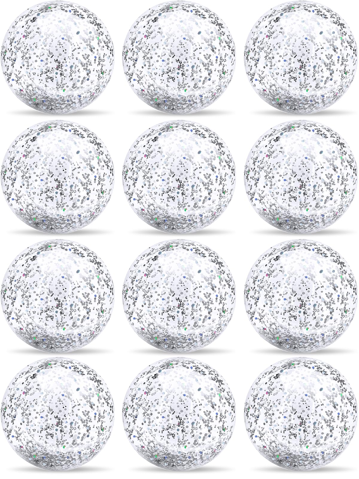 What You Can Get: 12Pcs16 inches Glitters beach balls in total, easy to fold after deflate, this giant inflatable Glitters helps the world come alive for your children, which can satisfy different people need of playing even as decoration High Quality Material Production: Made of the plastic and tes
