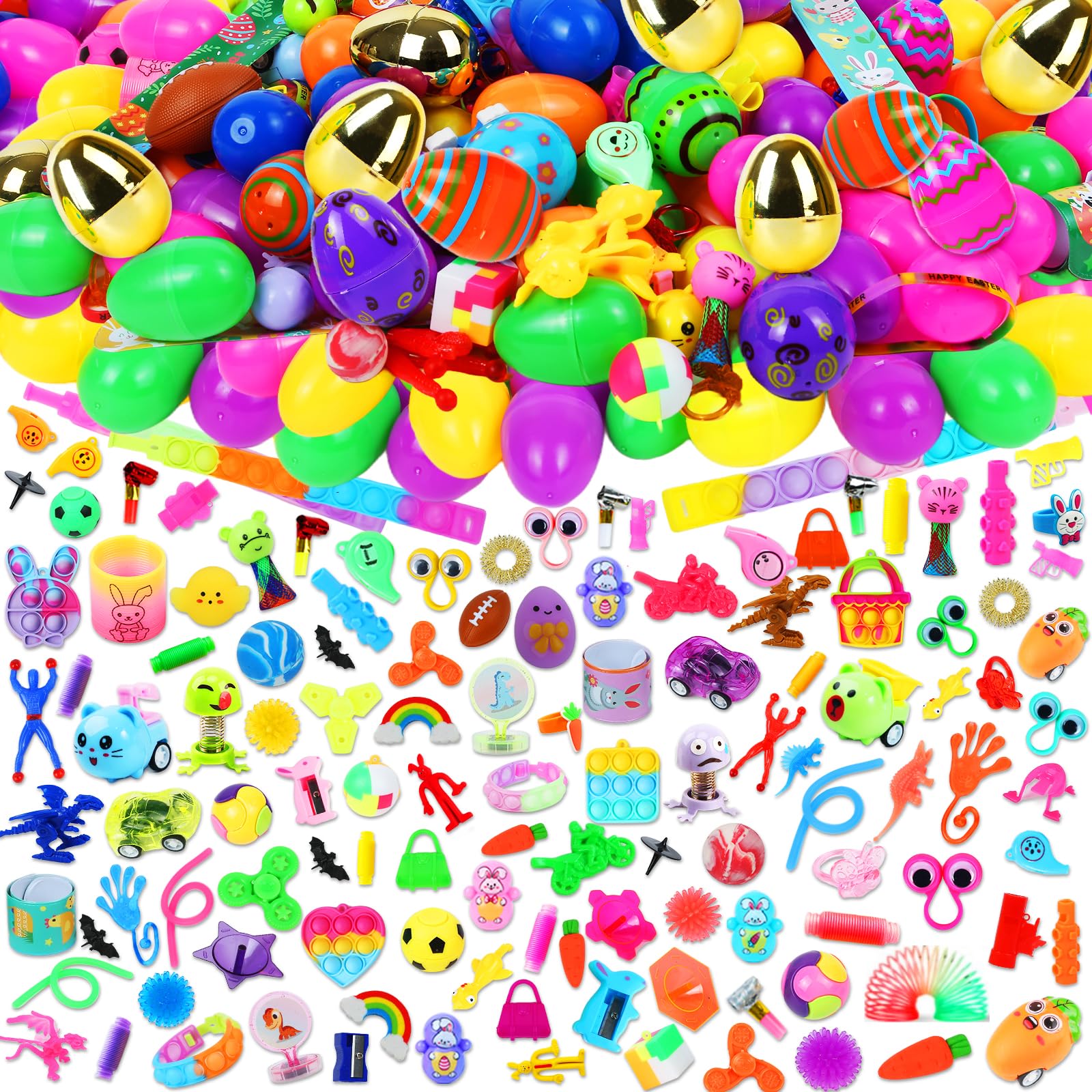 200 Pcs Prefilled Easter Eggs with Assorted Toys Inside,Basket Stuffers Easter Fillers,Easter Toys Bulk,Easter Egg Hunt Supplies,Prizes Classroom