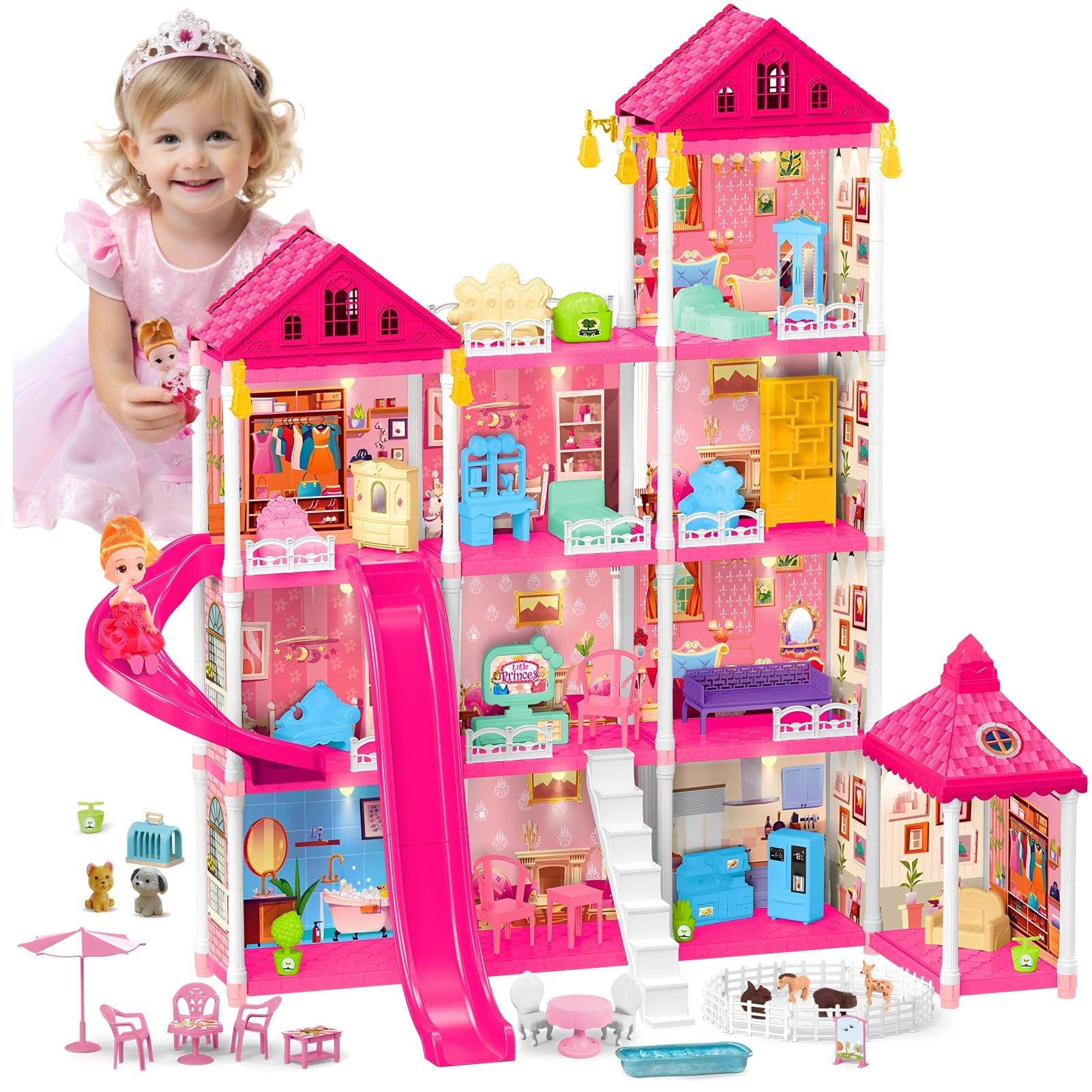 keefun Doll House Play House Princess Castle Building Toys for Girls, Big Pretend Play Dollhouse, Idea Birthday Gifts Toys for Girls Ages 3-8