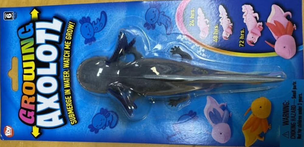 Growing Axolotl Water Toy, Grows from 6 to 12 Inches - Individual Blister Card, 4 Assorted Colors, Bath Science Fun (Blue)