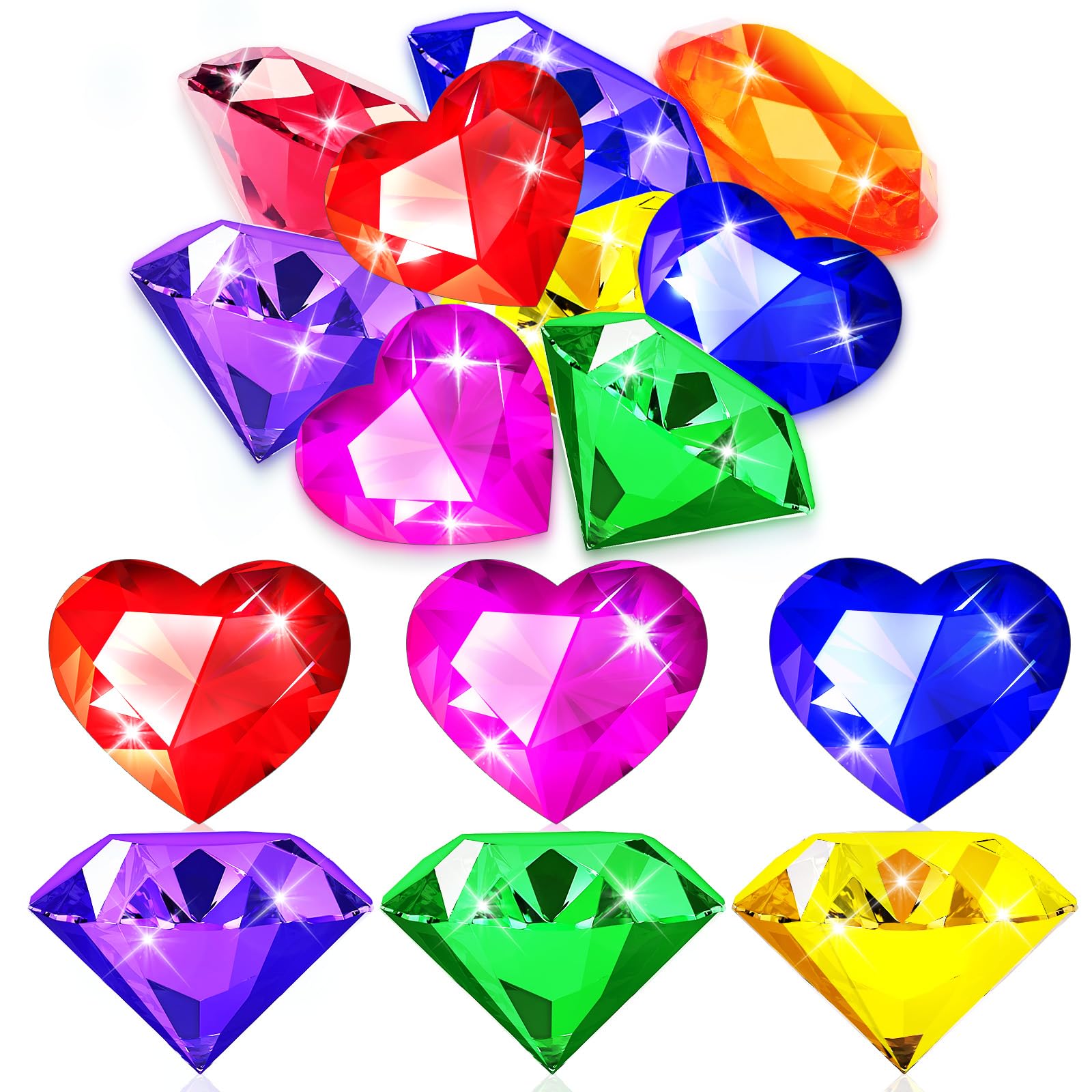 Package Includes: You will get 18 pcs big colorful pool gems toys, including heart gems and diamond gem toys. The size of the diving toys is about 1.58 inch, which is easy to hold in your hand. Diving gems for pool for kids are very suitable for children to exercise diving ability Colorful and Spark