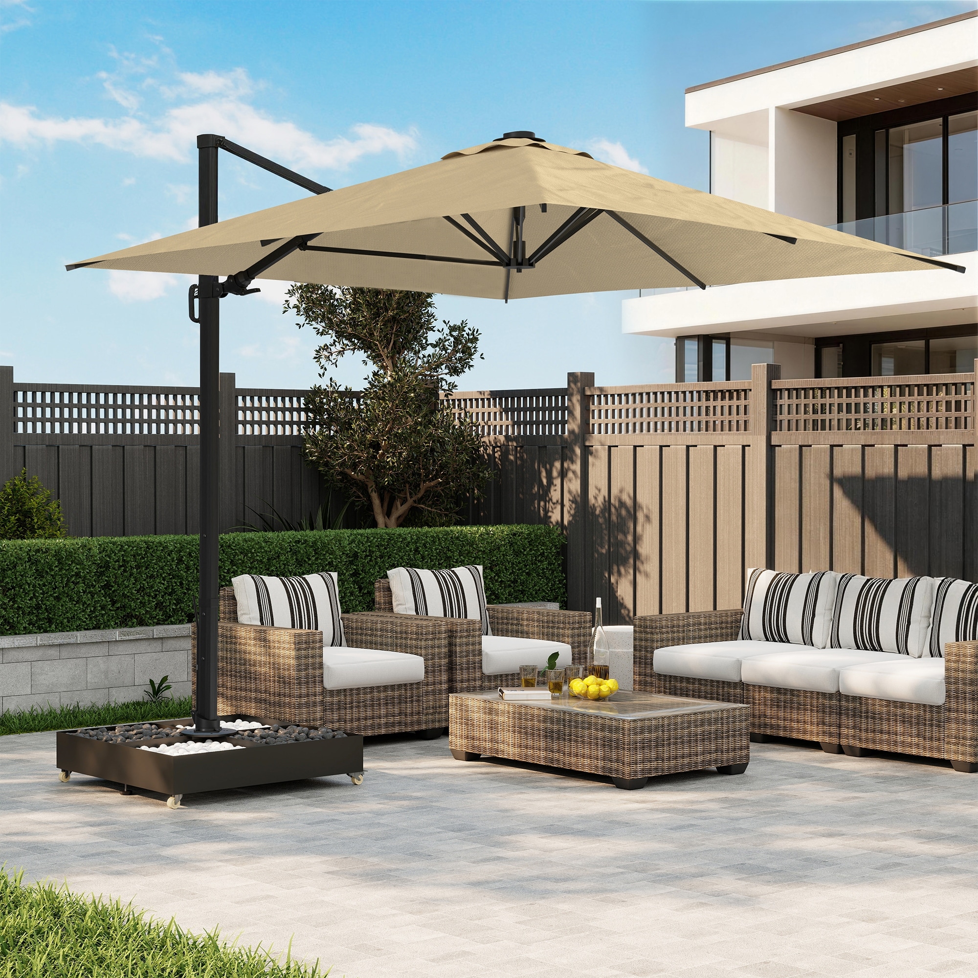 Sophisticated Outdoor Accented Patio Centerpiece: This umbrella base transforms any outdoor gathering area into a refined destination, seamlessly anchoring vibrant umbrella canopies over seating nooks or dining sets.