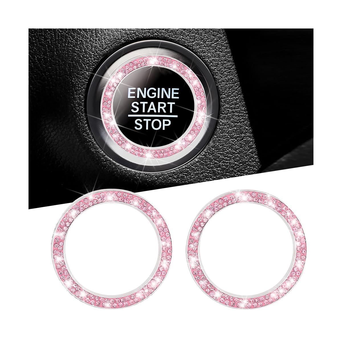 LKAHG 2PCS Car Bling Crystal Rhinestone Engine Start Decoration Ring, Sparkling Auto Push Start Button Cover Stickers, Vehicle Decor Accessories for