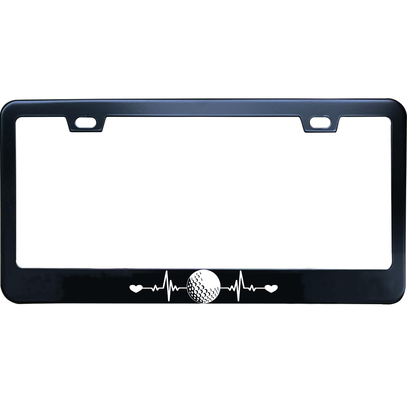 XYCustomBest Heartbeat Golf License Plate Frame - 12" x 6" Novelty Tag Black Stainless Steel Car License Plate Frame Holder for US/CA Vehicles 2 Holes