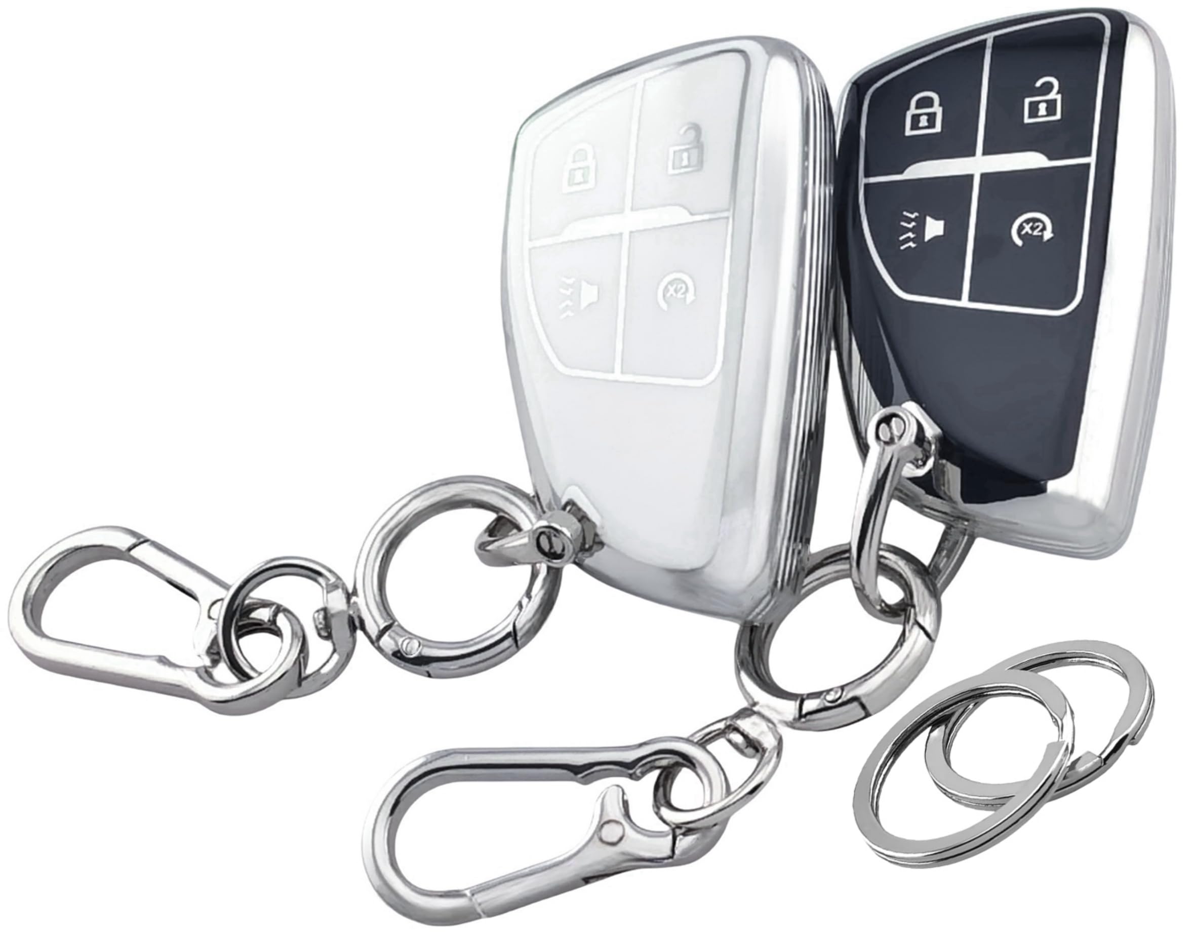 RUNZUIE 4 Buttons TPU Smart Key Fob for 2023 2024 2025 Chevy Chevrolet Colorado Key Fob Cover (Black/White(Silvery), 2Pcs)