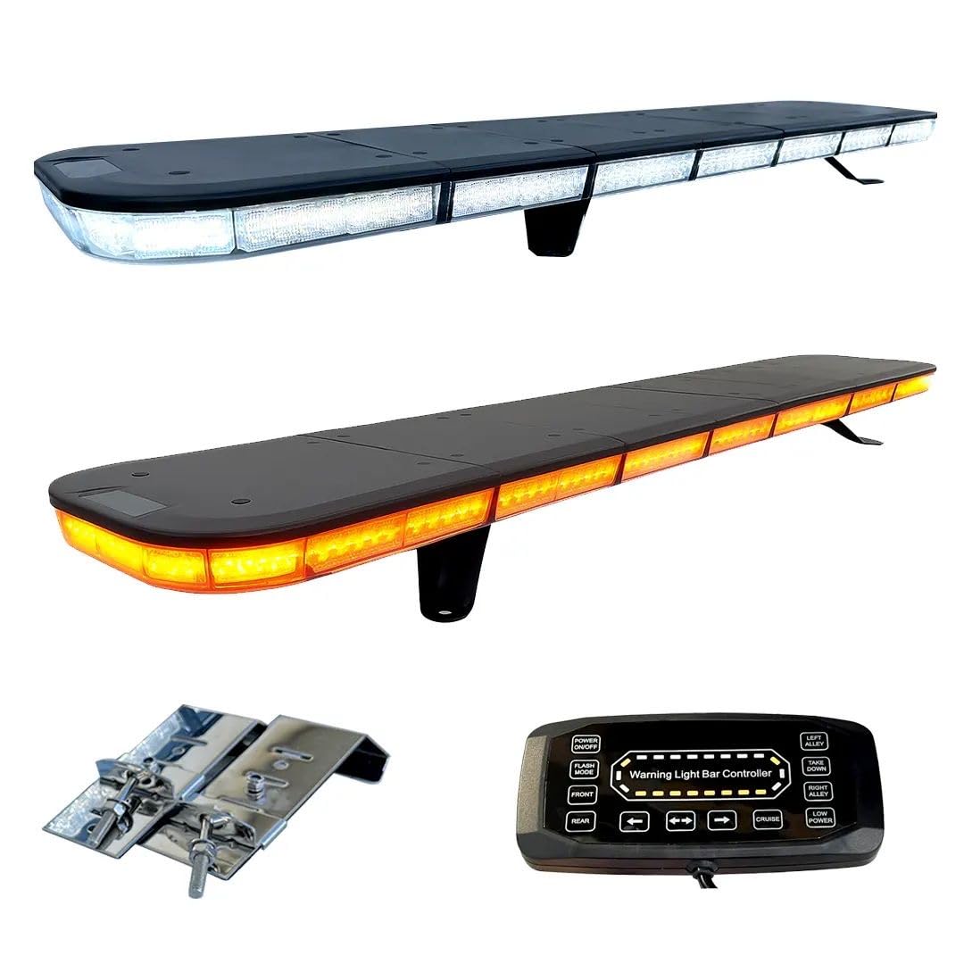 Amber White 51" 96W COB Light Box Amber Bar Light, Emergency Warning Flashing Bar Roof Enforcement Hazard Flashing
