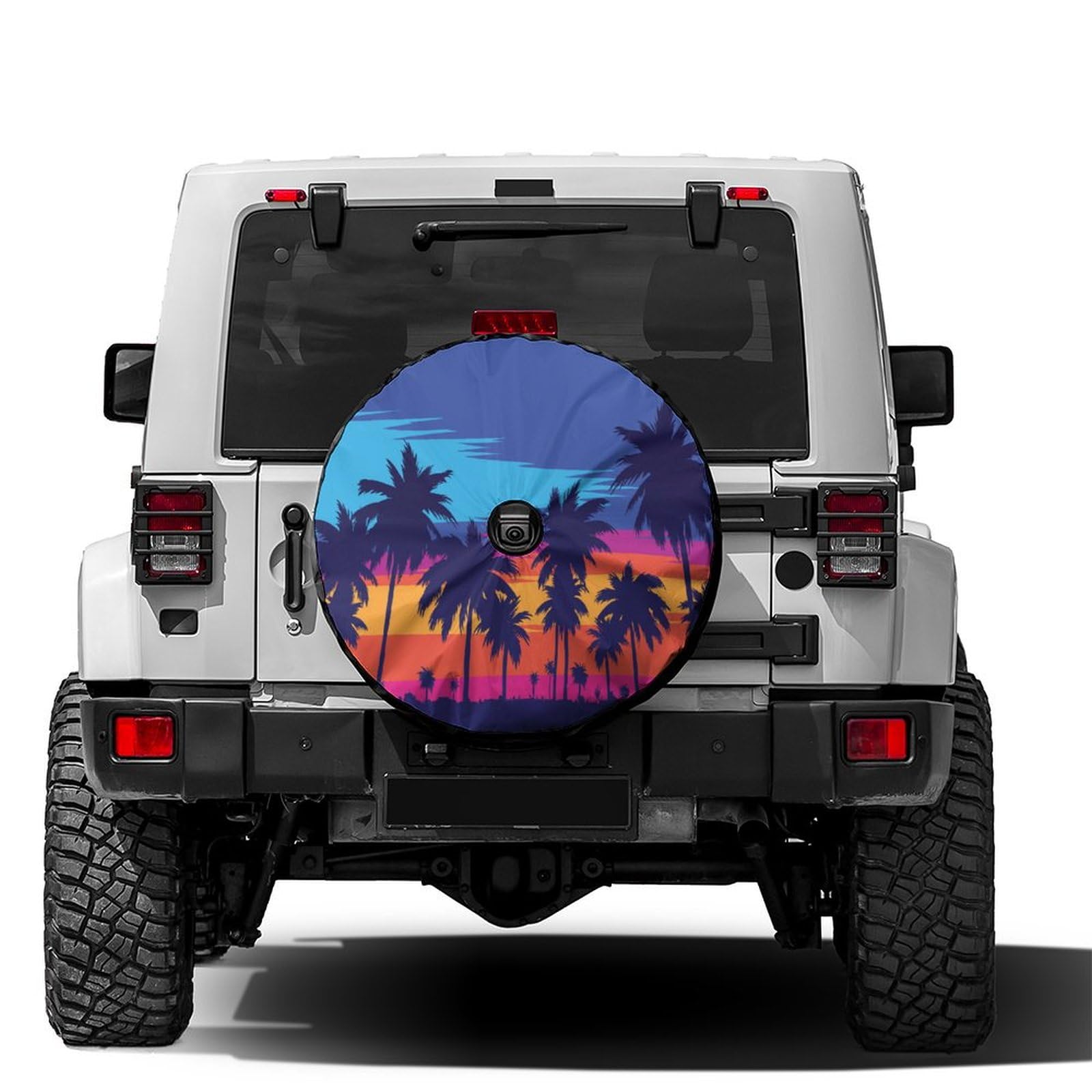 Foruidea Palm Tree Tropical Sunset 3 Spare Tire Cover with Backup Camera Hole Wheel Tire Cover Fit Trailer, RV, SUV and Many Vehicle 17inch