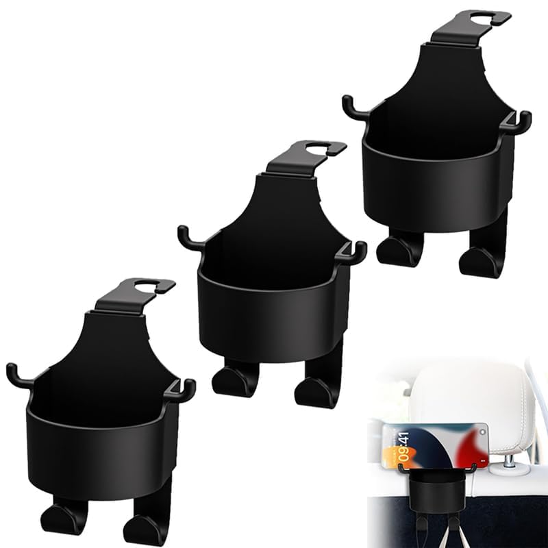 【Car Seat Headrest Cup Holder with Hooks - Durable Materials】Our multifunctional hook for car seat back crafted from thick, high-quality plastic. The back seat cup holders for your car are designed for durability. The car cup holder reinforced construction ensures that your car seat back storage